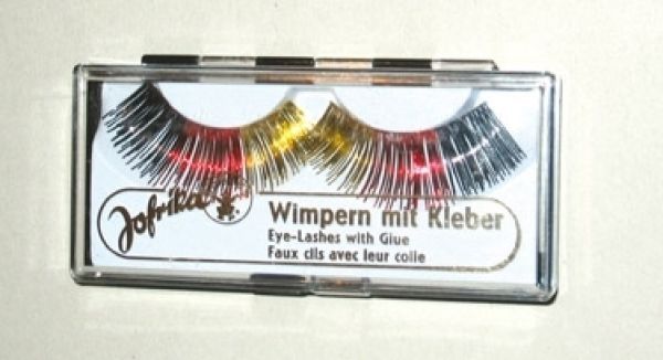 Fanwimpern - schwarz/ rot/ gold mit Kleber
