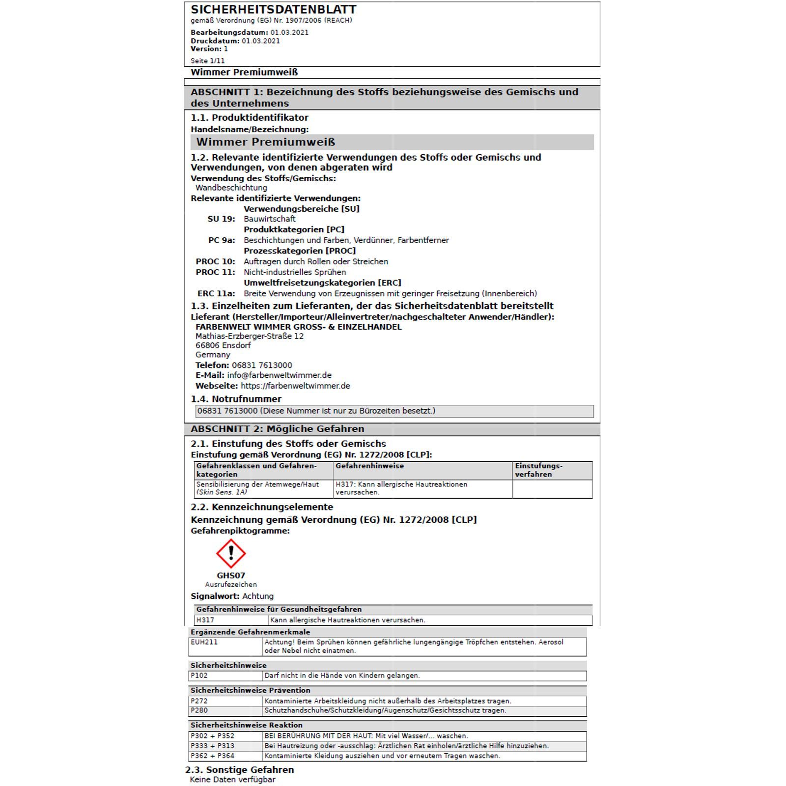 Farbenwelt WIMMER Premiumweiss 12.5 LTR Wandfarbe Innenfarbe DKK 1 NAK 3