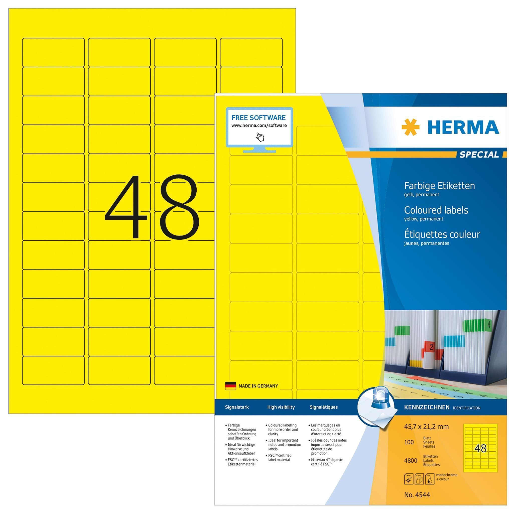 Herma Farbige Etiketten A4, 45,7 x 21,2 mm, gelb, permanent haftend