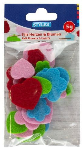 Farbige Herzen und Blumen aus Filz 5 g Beutel