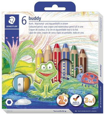 • Staedtler® 140 C6 Farbstifte Buddy 3in1 - Kartonetui mit 6 Stiften und 1 Spitzer