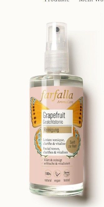 farfalla - Grapefruit Feuchtigkeitsspendendes Tonic - 100 ml erfrischt und vitalisiert feuchtigkeitsarme Haut besonders sanft pflanzliche Hyaluronsäure und Aloe Vera versorgen intensiv mit Feuchtigkeit Orangenblütenwasser regeneriert und besänftigt