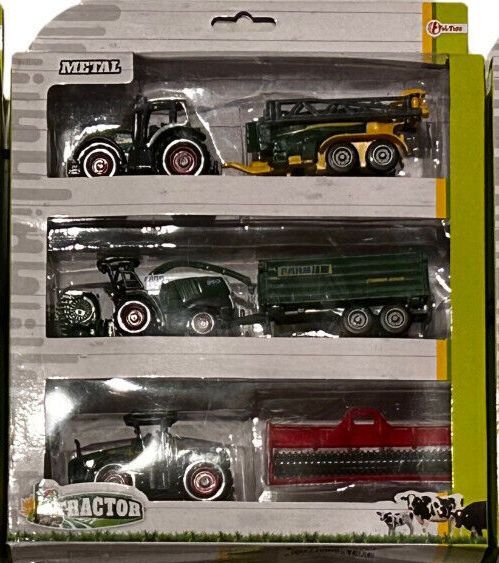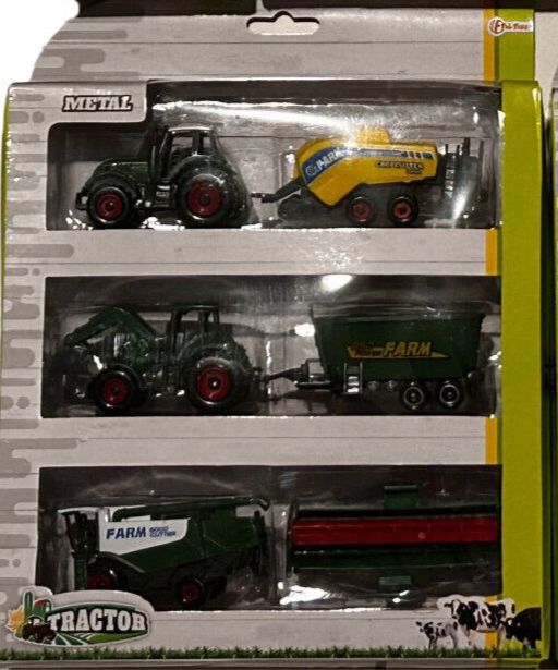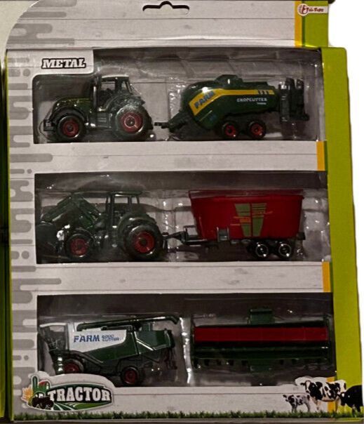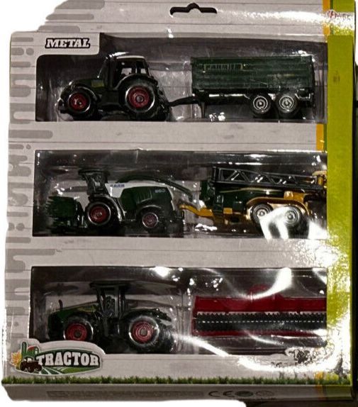 Farm Traktoren Set Fahrzeuge - 6 Teilig ca. 5-8 cm Groß NEU OVP Auswahl an Fahrzeug Sets Abmessungen von ca. 5 cm - 8 cm je nach Art von Fahrzeug und Anhänger Material: ca. 70% Kunststoff und 30% Guß (Metal) Achtung: Nicht für Kinder unter Jahren geeignet.