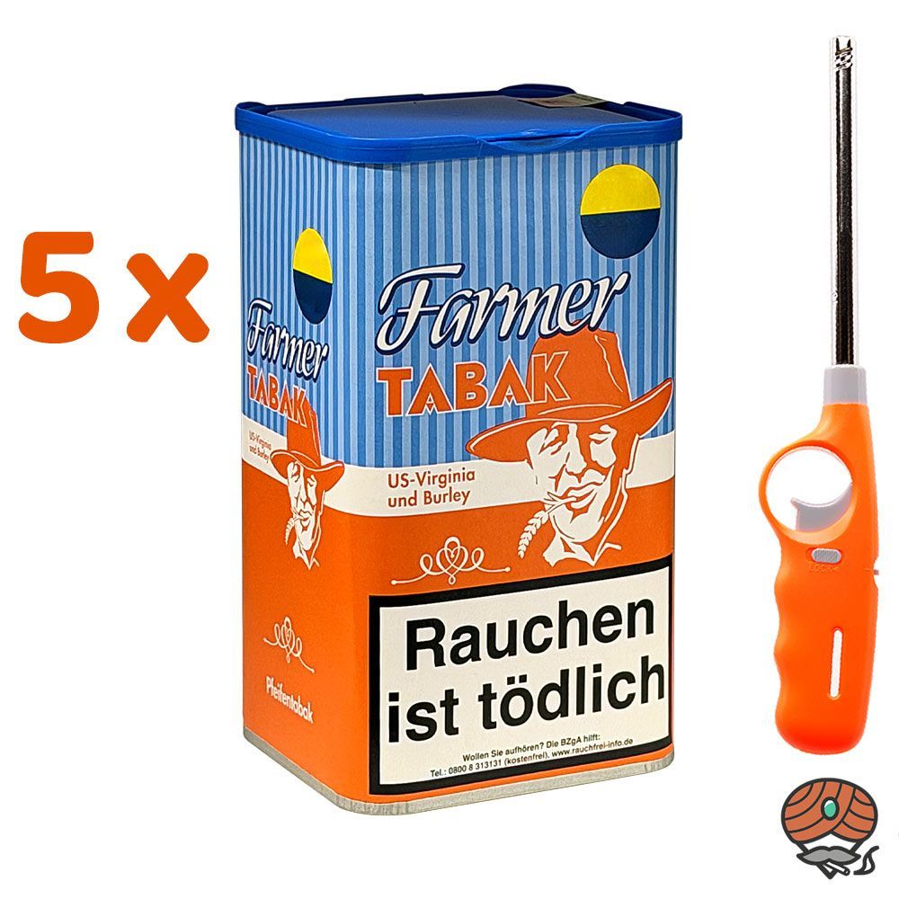 Farmer Pfeifentabak Dose 5x 160g + Stabfeuerzeug