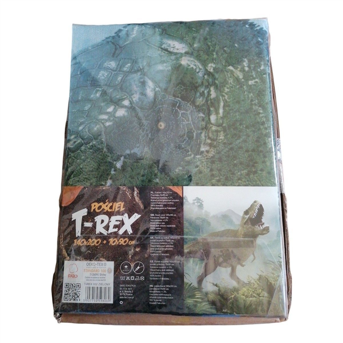 FARO FARO Kinder-Bettwäsche „T-Rex“ 140x200 + 70x90, 100 % Baumwolle, Reißverschluss,