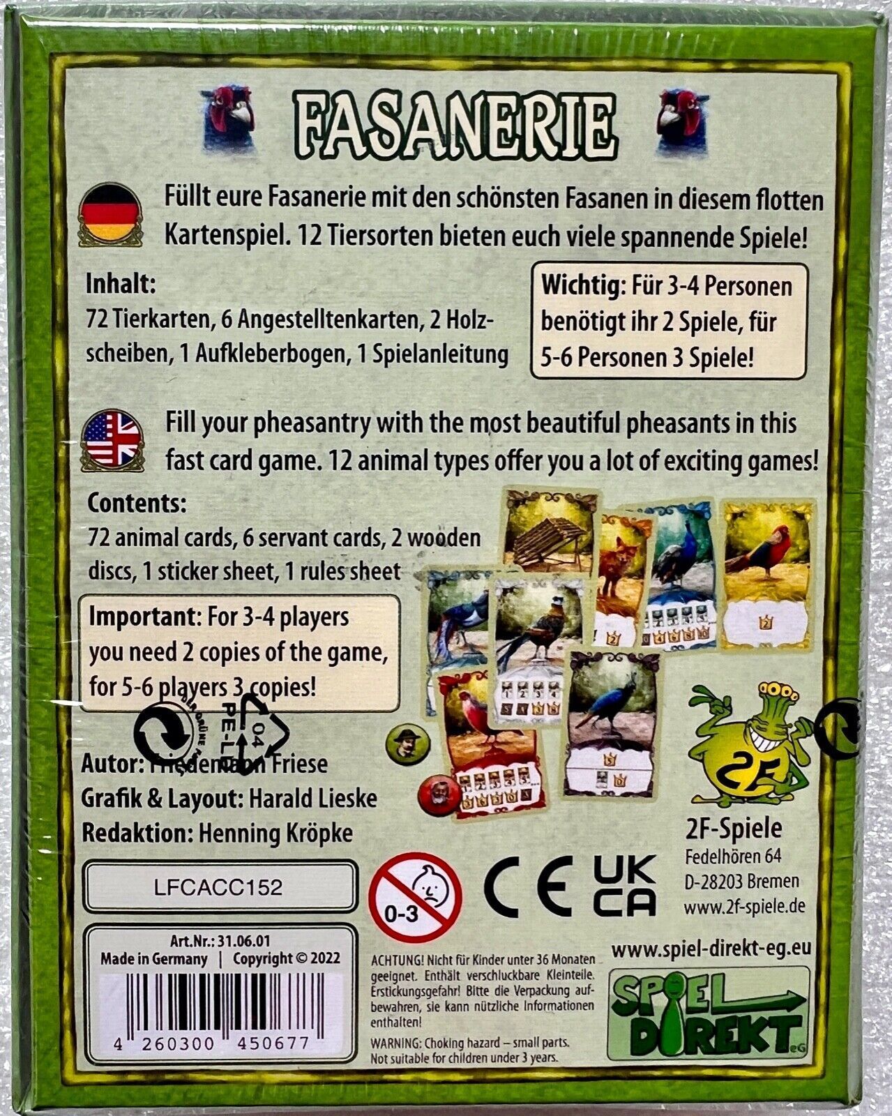 2F-Spiele Fasanerie und 1. Erweiterung Kartenspiel Kinderspiel 2F Spiele Familienspiel