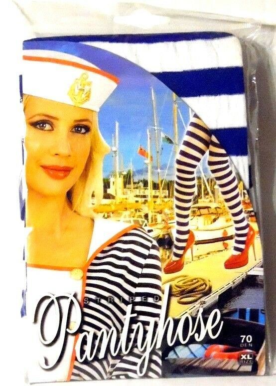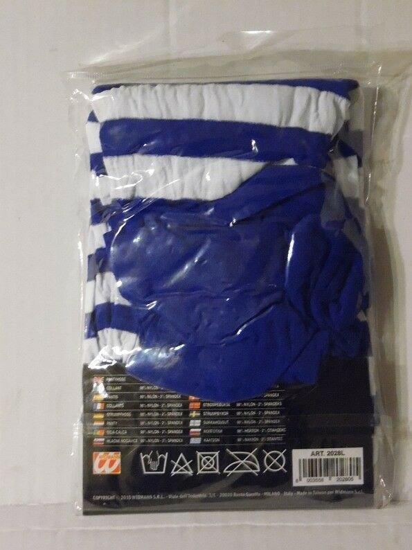 widmann Fasching Damen + Herren Nylon Ringel Strumpfhose 70 den blau-weiss Grösse XL