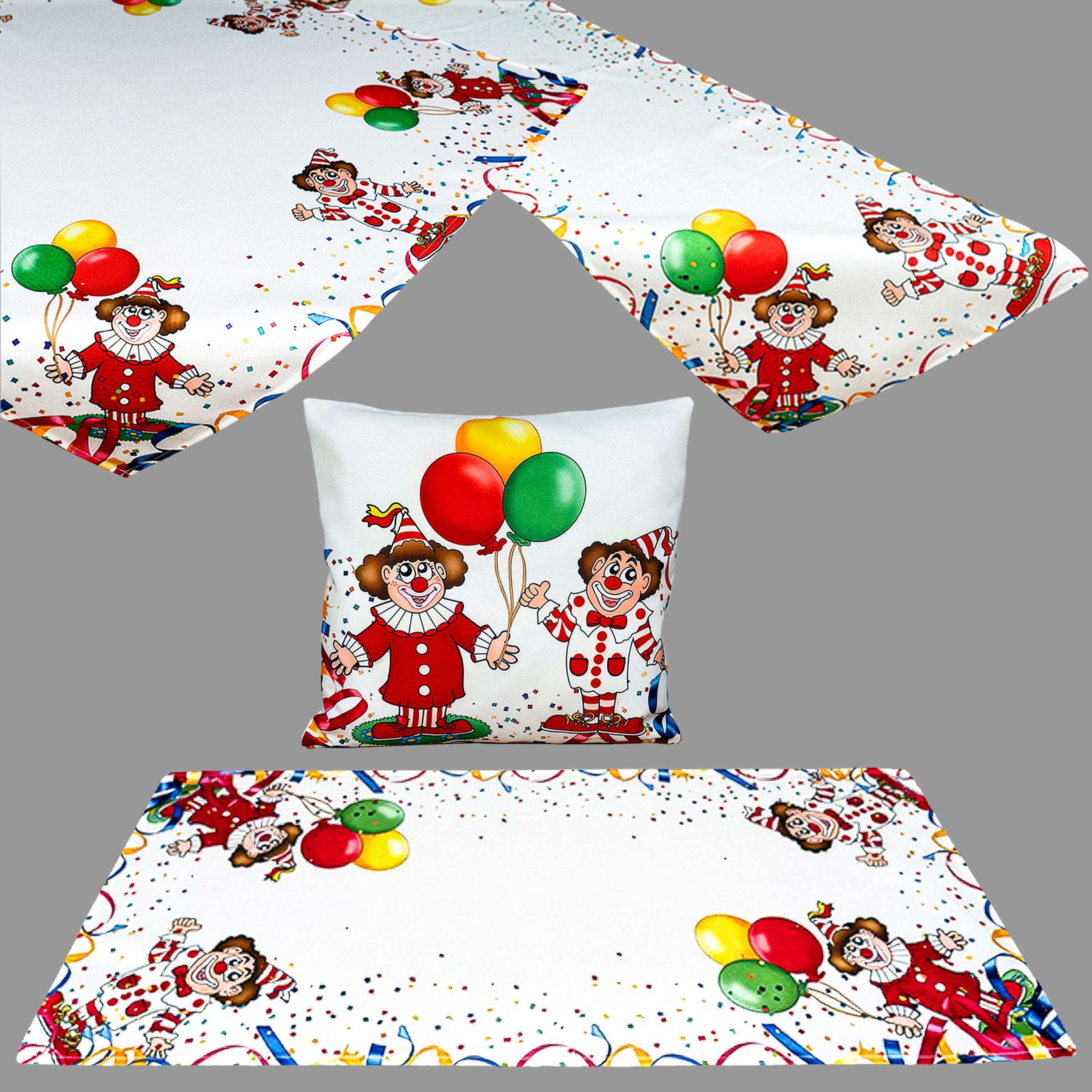 Fasching Tischdecke Tischläufer Kissenhülle Clowns Heimtextilien Karneval Weiß