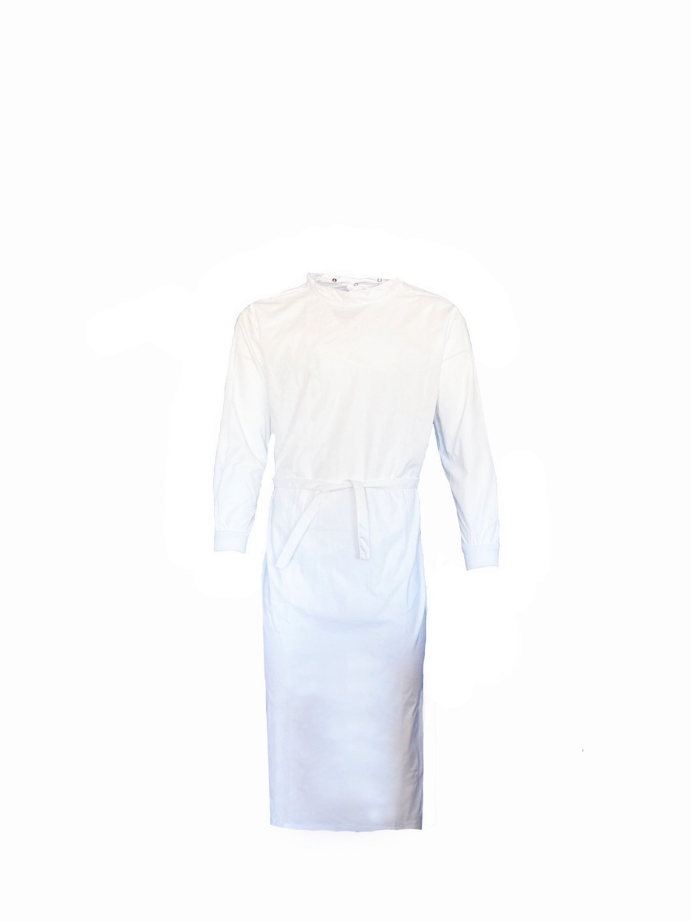 Faschingskostüm OP Kittel OP Mantel - waschbar wiederverwenbar unisex - Farbe: weiß - langarm mit Strickbündchen - am Rücken zum Binden - verstellbarer Halsausschnitt - strapazierfähig