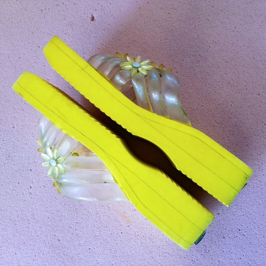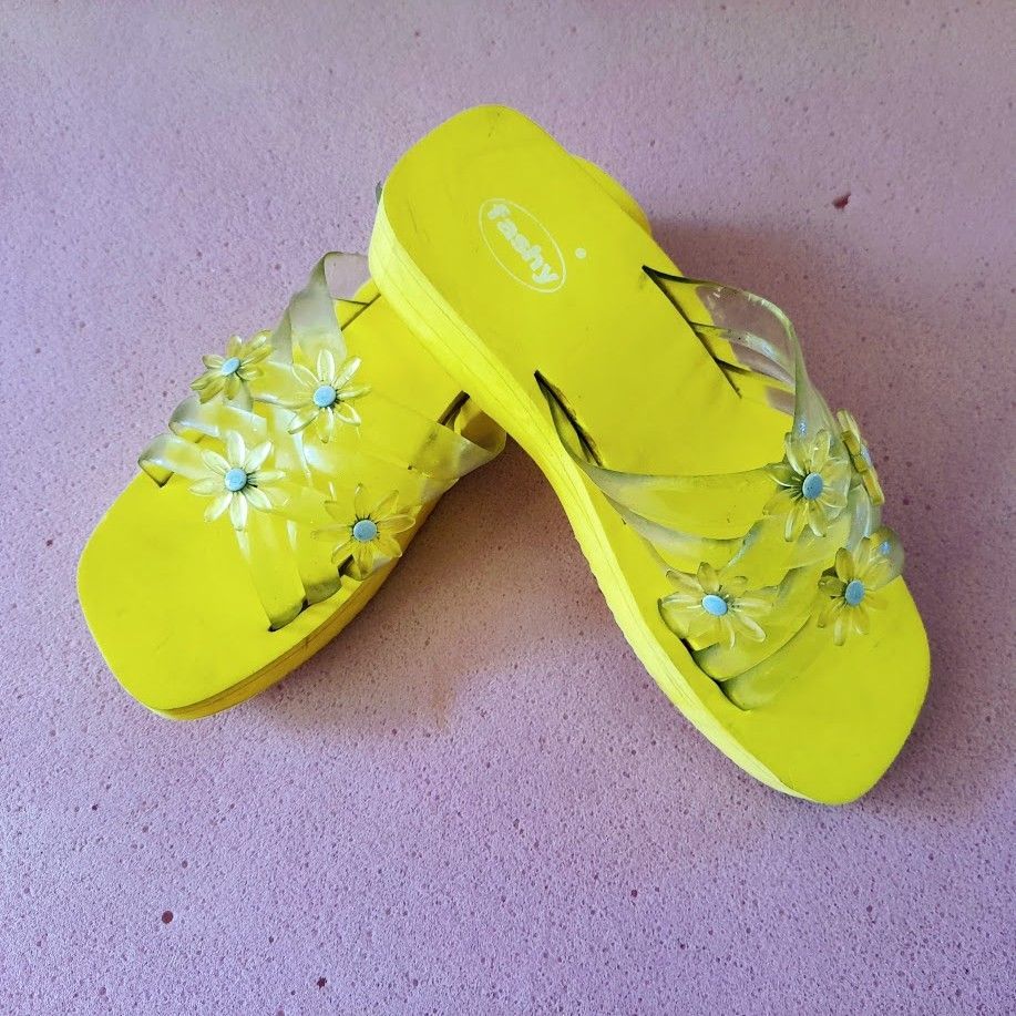 Fashy Fashy Strand Schuh Pantolette Hausschuhe Badelatschen Gr.41 Gelb mit Applikation