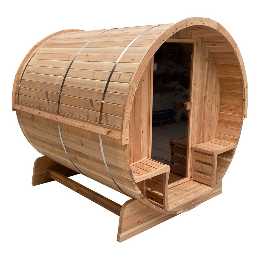 Fass Sauna Fasssauna Traditionell TR-300 Zedernholz 306x185cm - mit Aufbau innerha