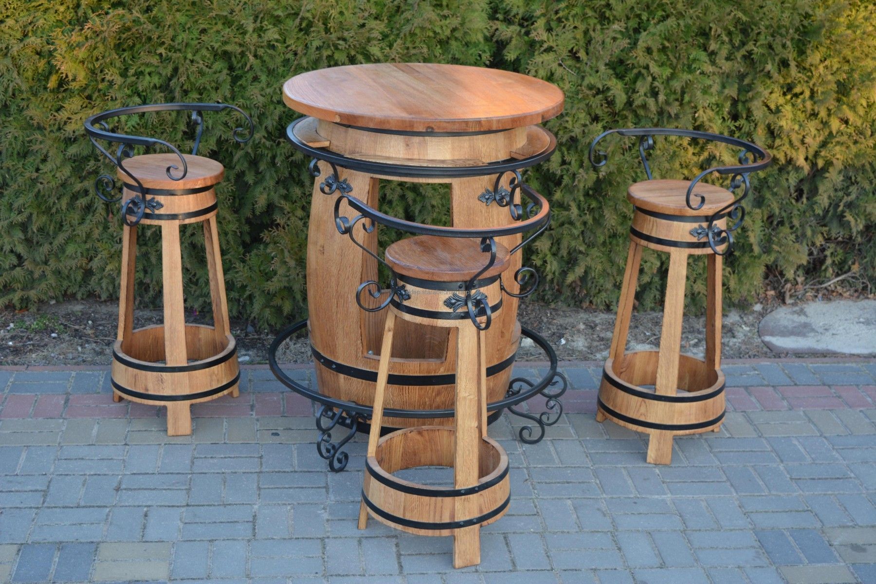 Fasstisch + 4 Hocker SET Holz Fass Haus Gartendeko Gartenmöbel Garten Tisch