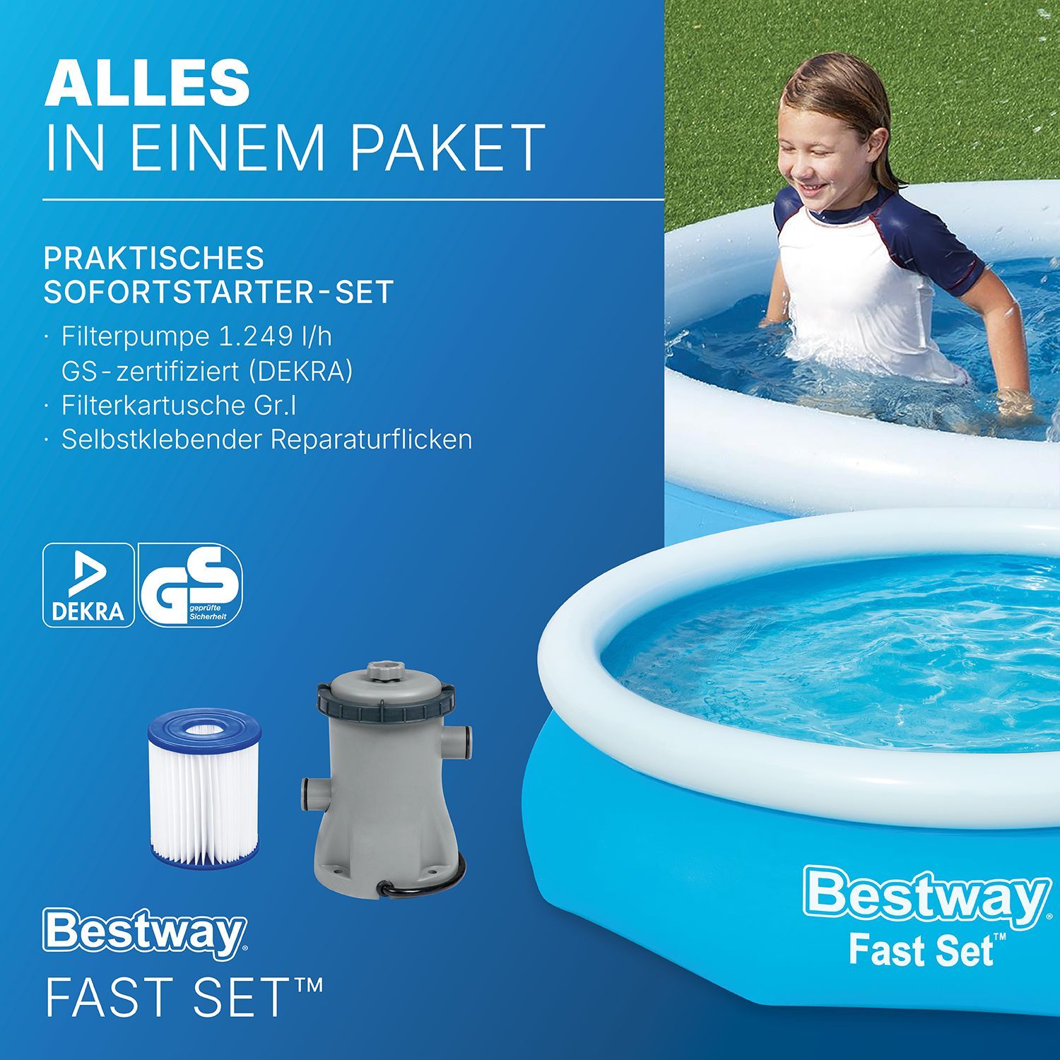Bestway. Fast Set™ Aufstellpool-Set mit Filterpumpe Ø 305 x 76 cm, blau, rund