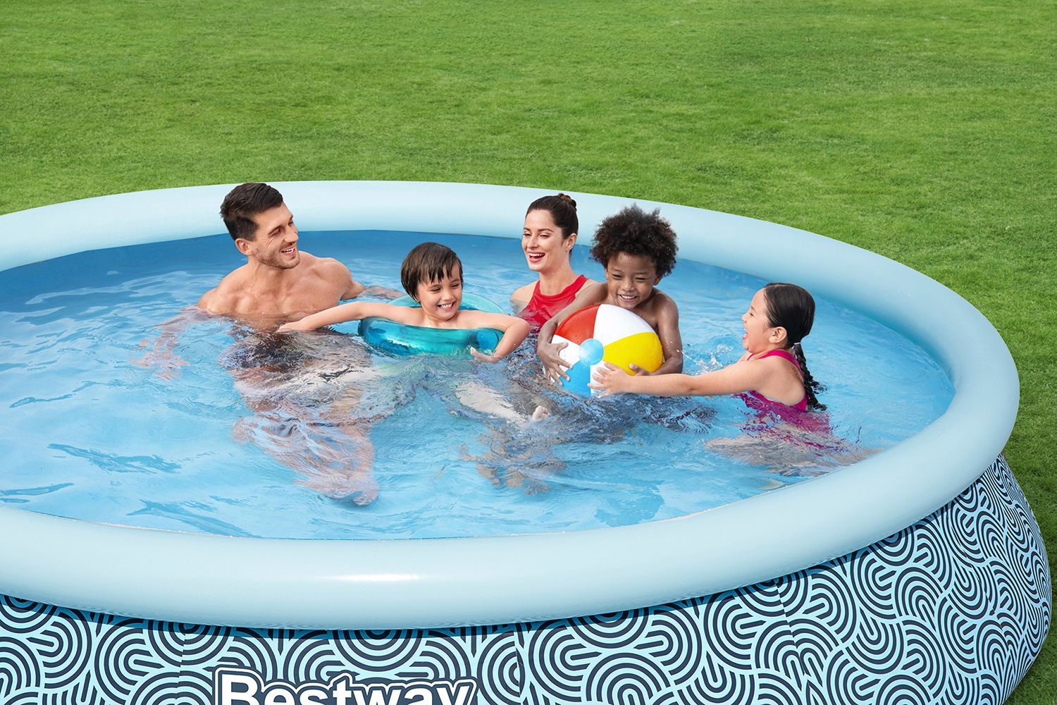 Bestway. Fast Set™ Aufstellpool-Set mit Filterpumpe Ø 396 x 84 cm, Grafisches Liniendesign,