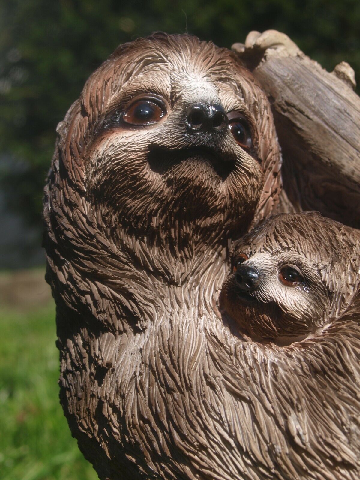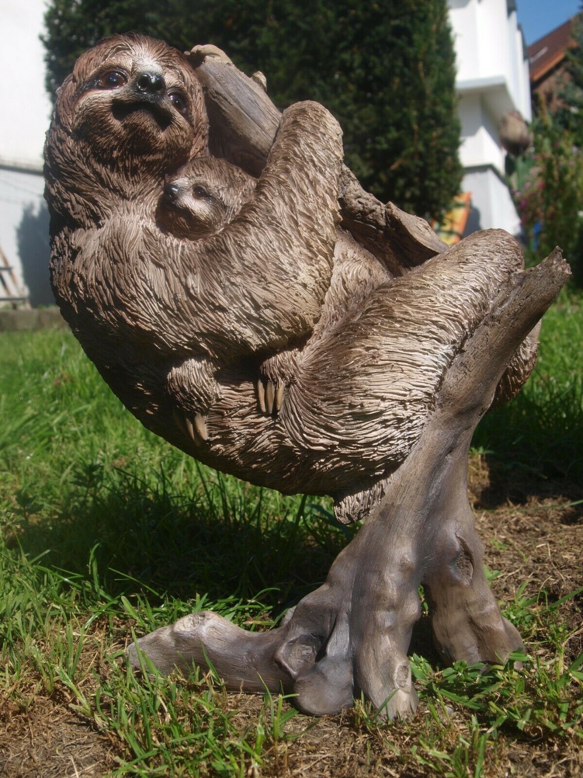Faultier Deko Figur mit Baby AI wetterfest 33cm Gartenfigur Neuheit