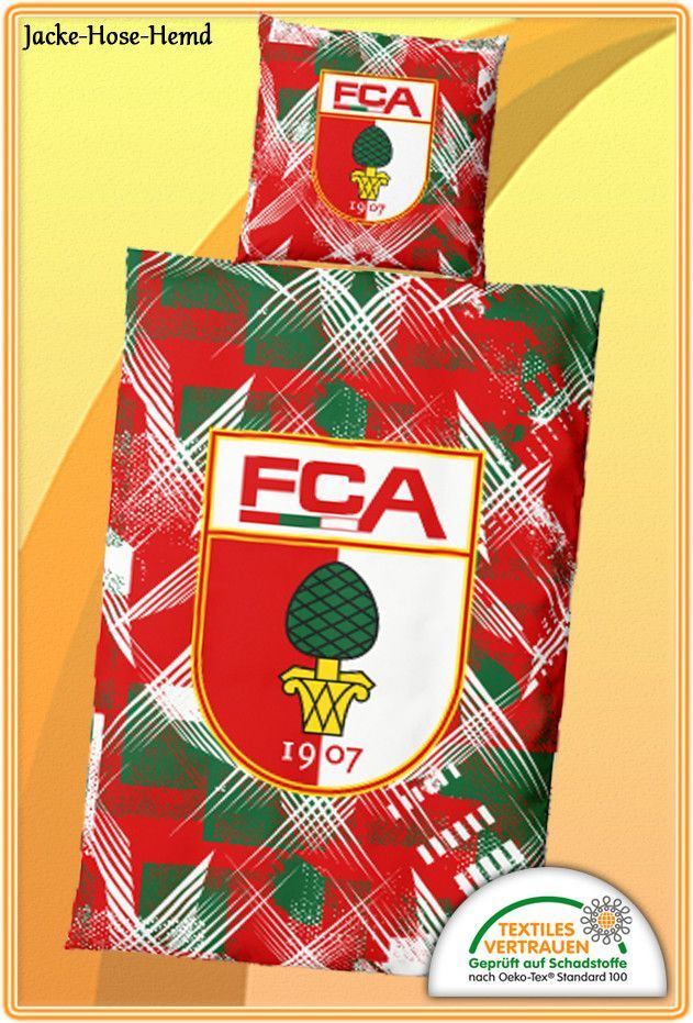 FC Augsburg Bettwäsche Baumwolle Logo FCA 1907 Reißverschluss Gr. 135x200cm NEU