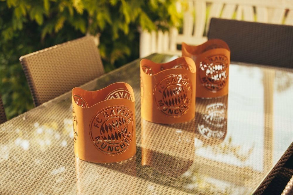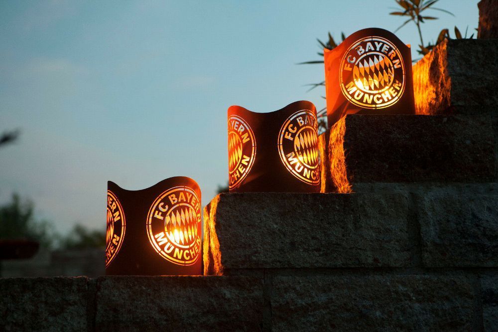 FC Bayern München Windlicht aus Metall FCB Fussball Edelrost Feuerflair