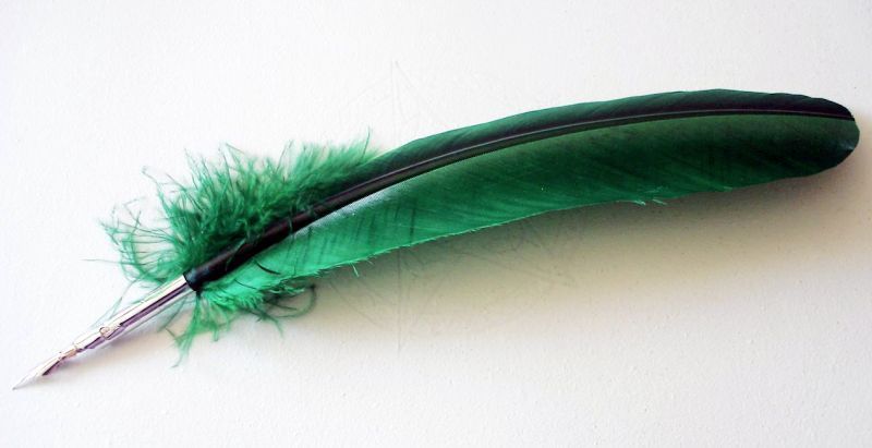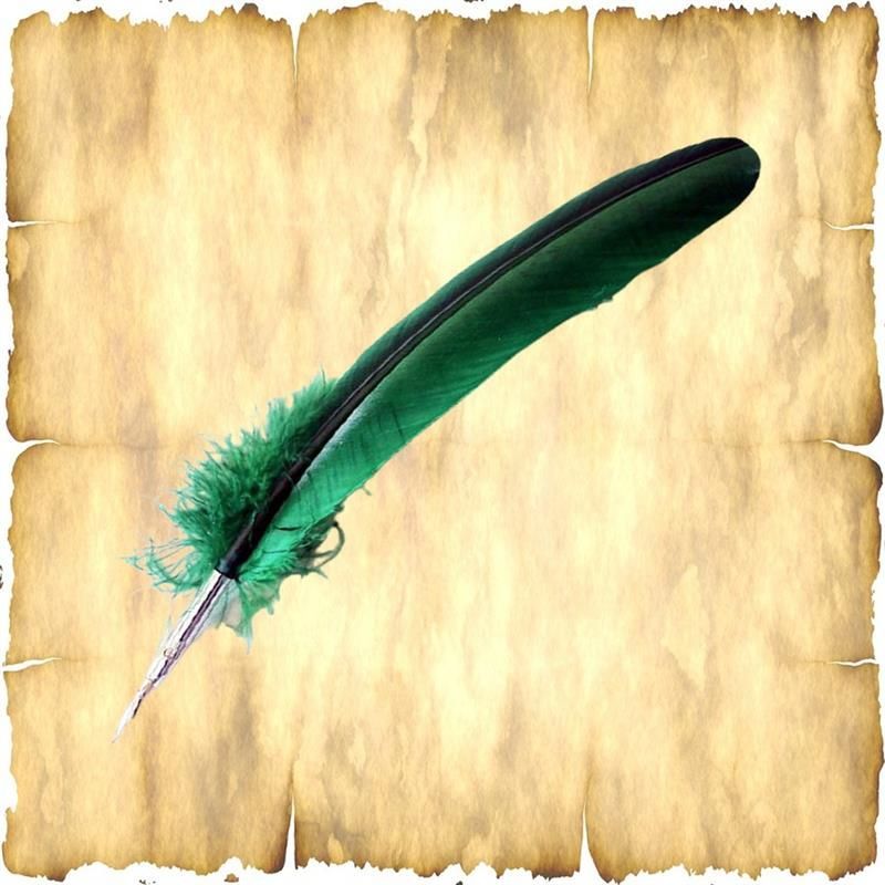 Federkiel mit Metallschreibfeder Dunkelgrün ca. 30 - 35 cm Kalligrafieset