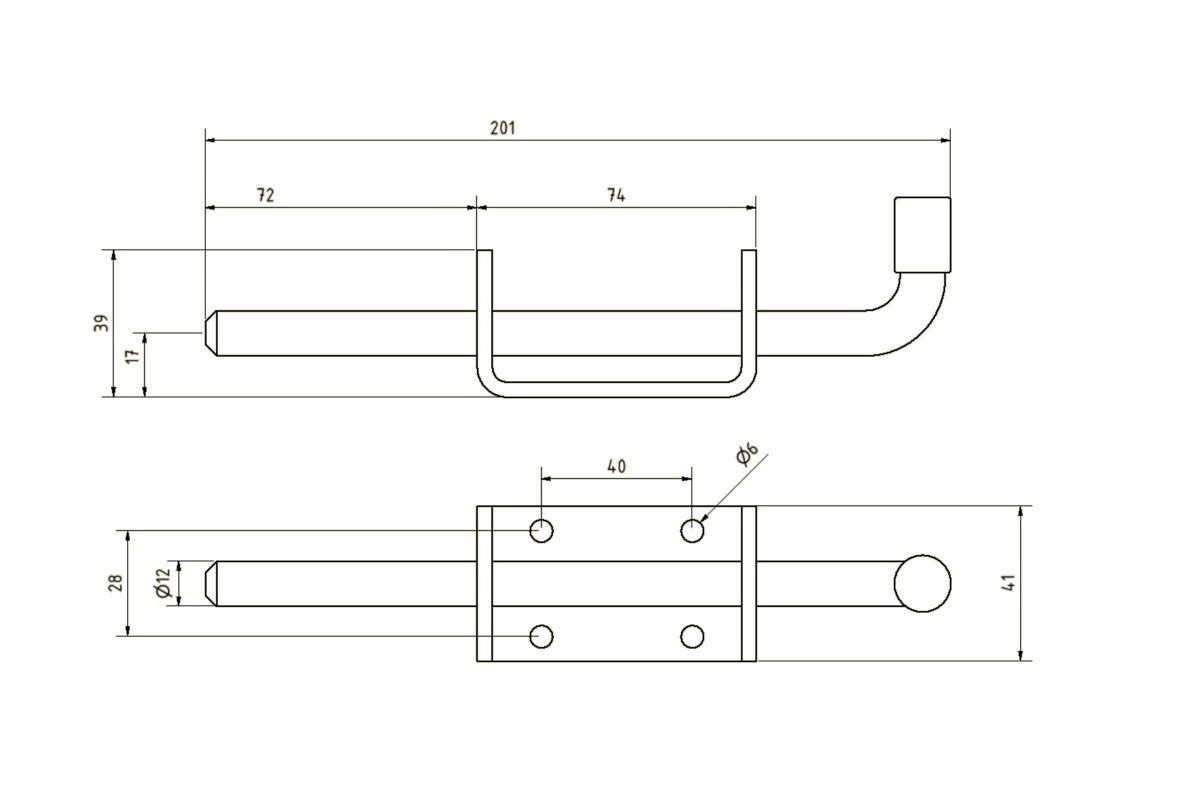 Federriegel mit Anschraubplatte - lang - Edelstahl