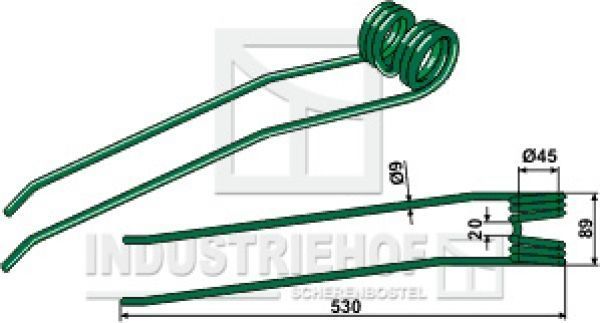 Federzinken Schwaderzinken Rotorschwader für Freudendahl Best.-Nr. 15-JF-06 Technische Datem: Federzinken: Grün Best.-Nr. 15-FJ-06 Vergl.-Nr.: 0606811 2503-057X Länge gesamt: 530 mm Breite gesamt: 89 mm Zinkendurchmesser: 9 mm Durchm. der Feder 45 mm Aufnahmeöffnung: 20 mm Gewicht: 0,910 kg Artikel