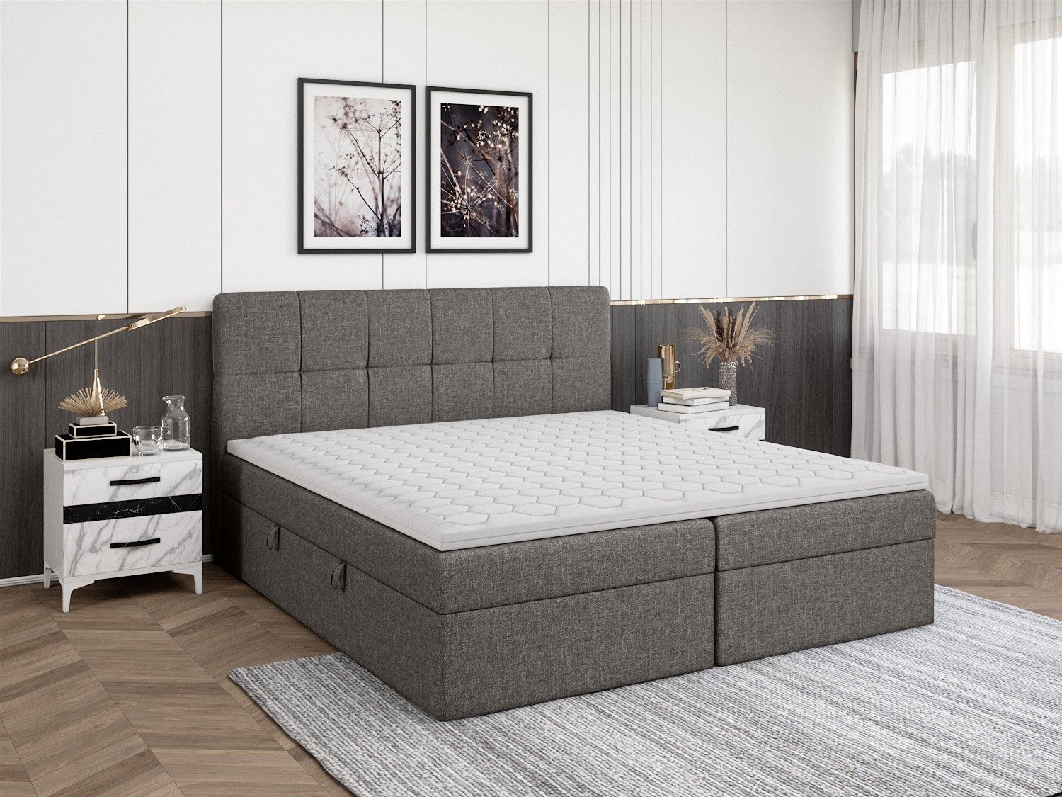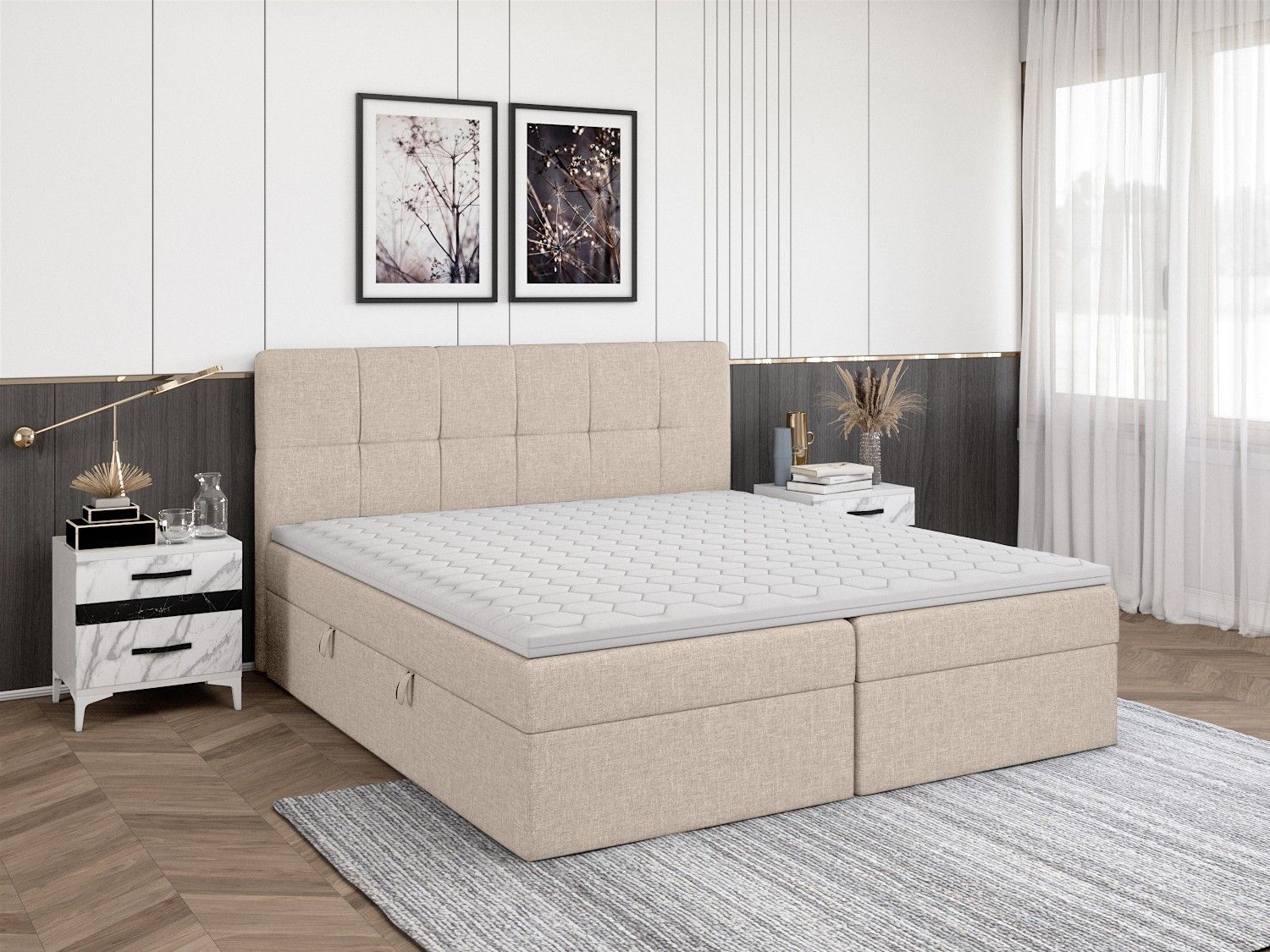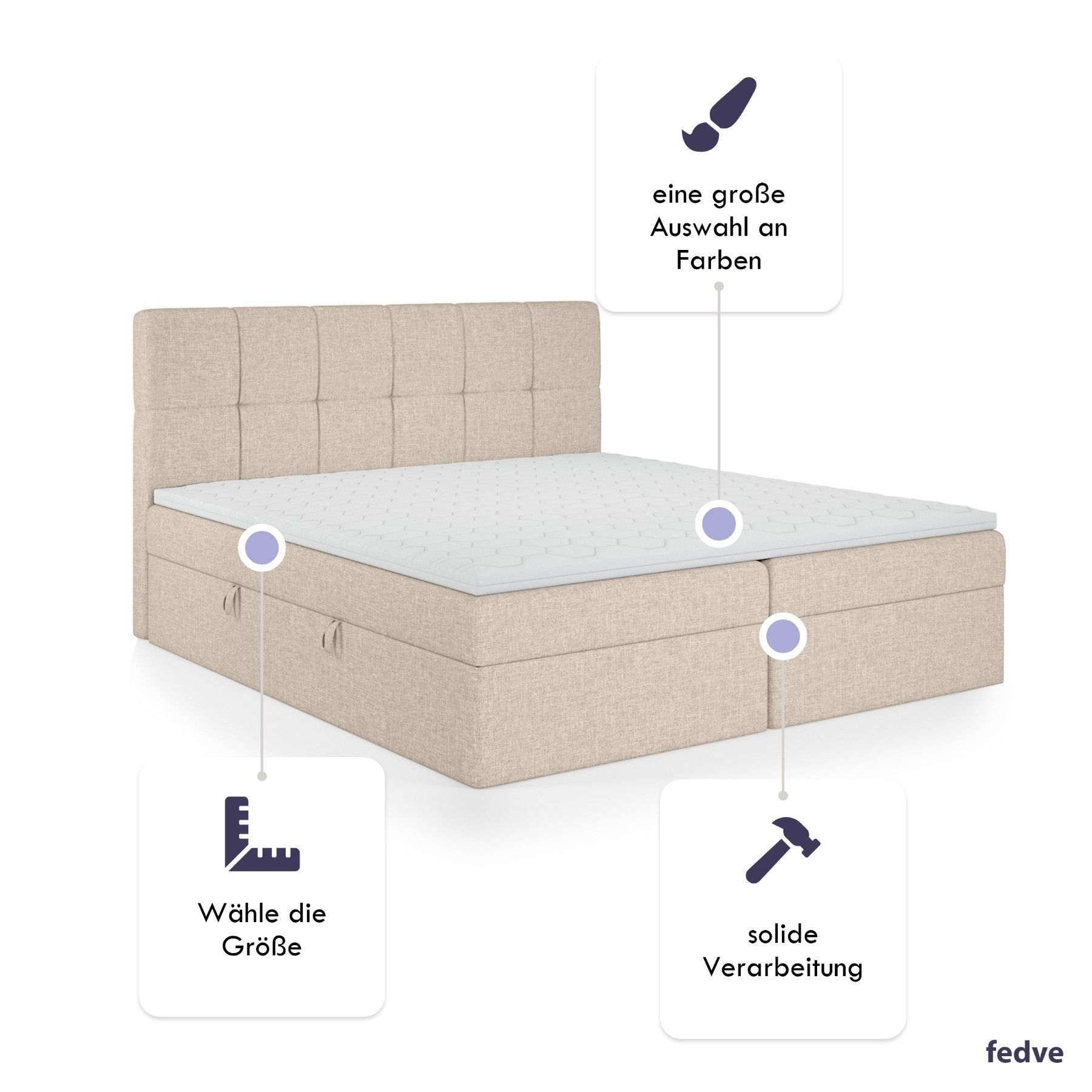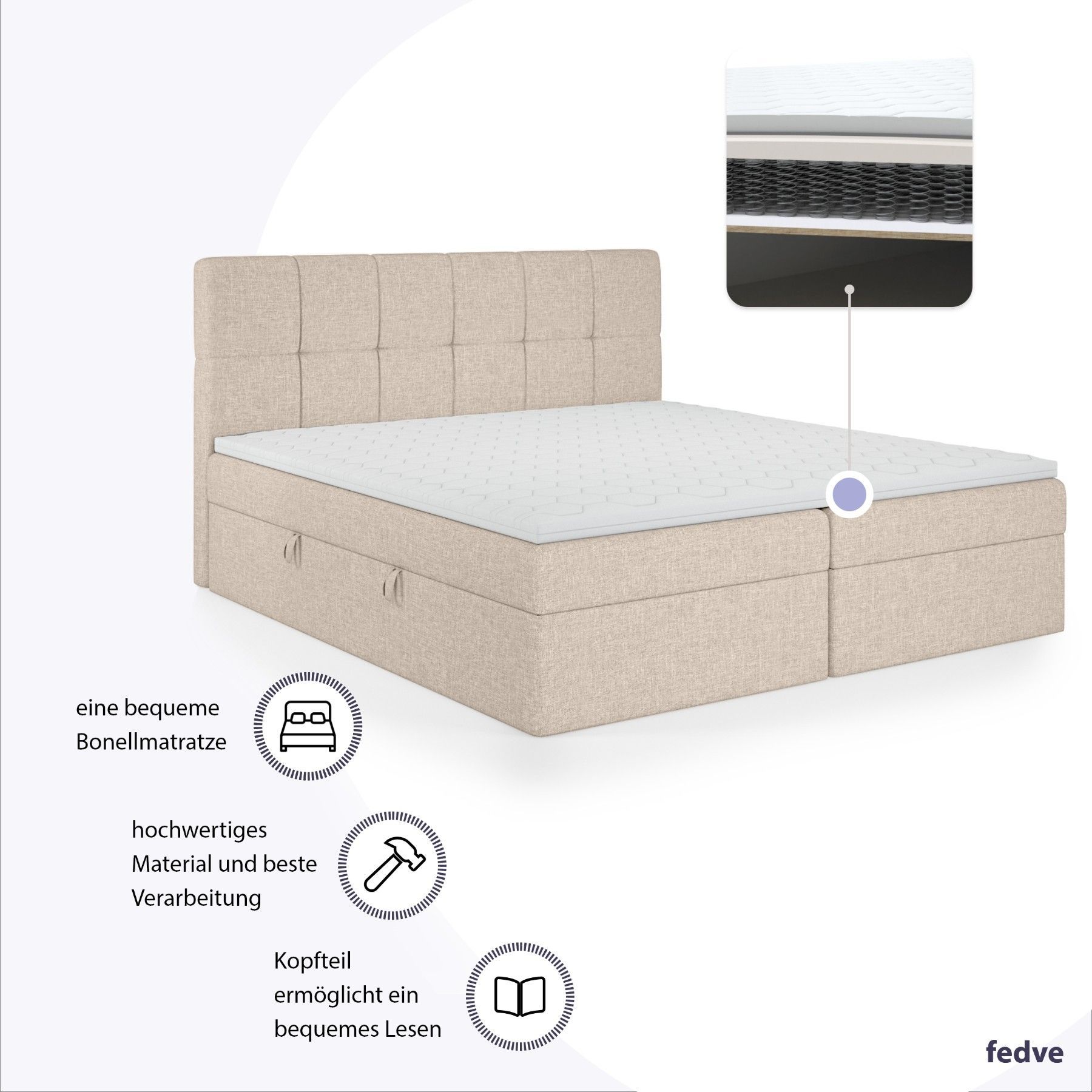 FEDVE Boxspringbett Mokpo Bettkästen Matratze Topper 140/160/180/200x200 cm