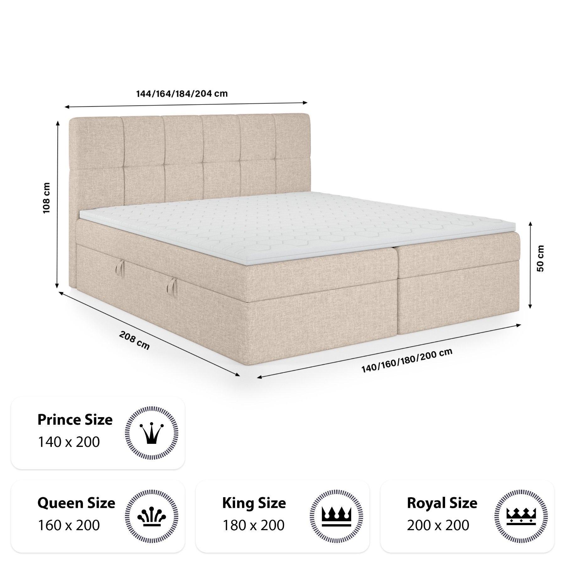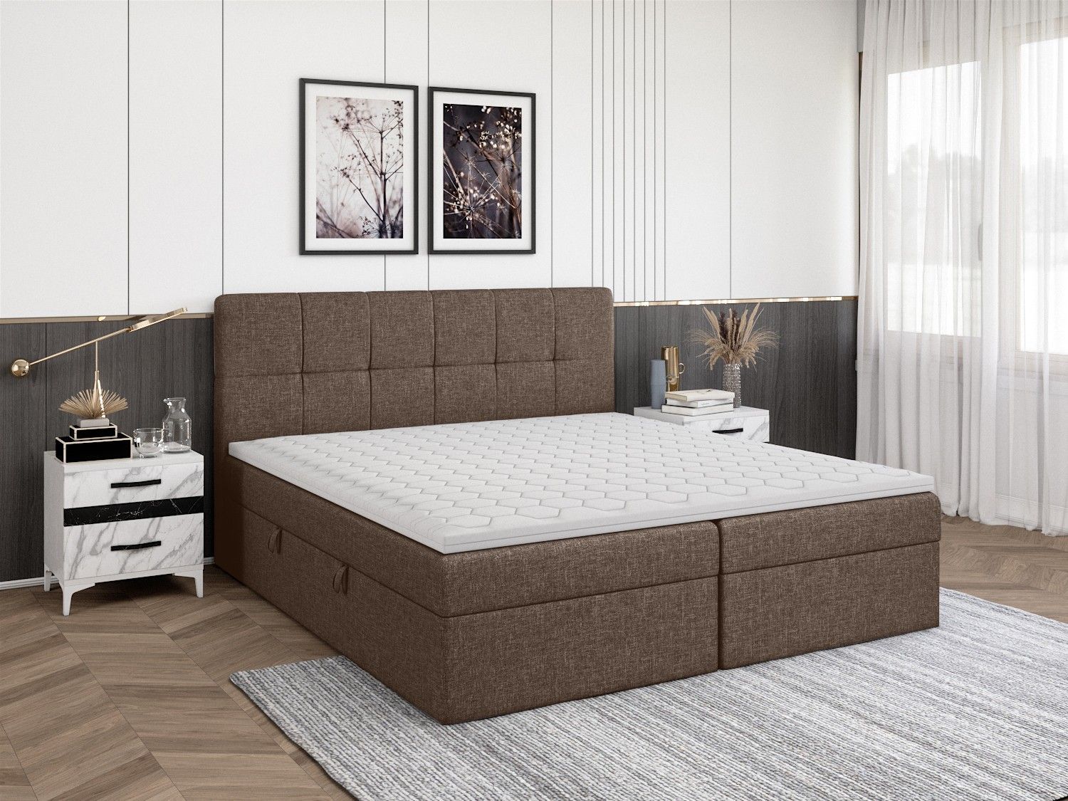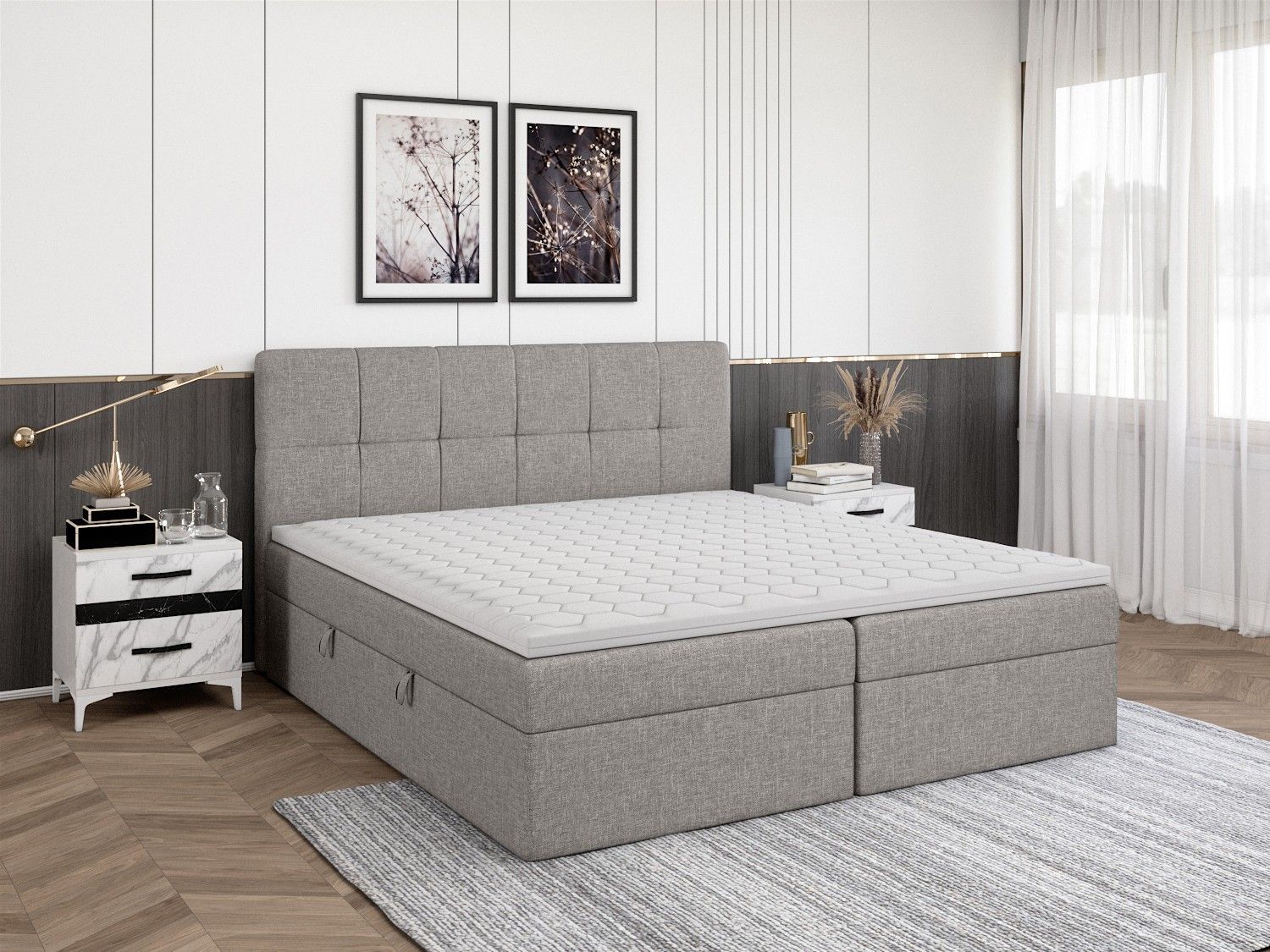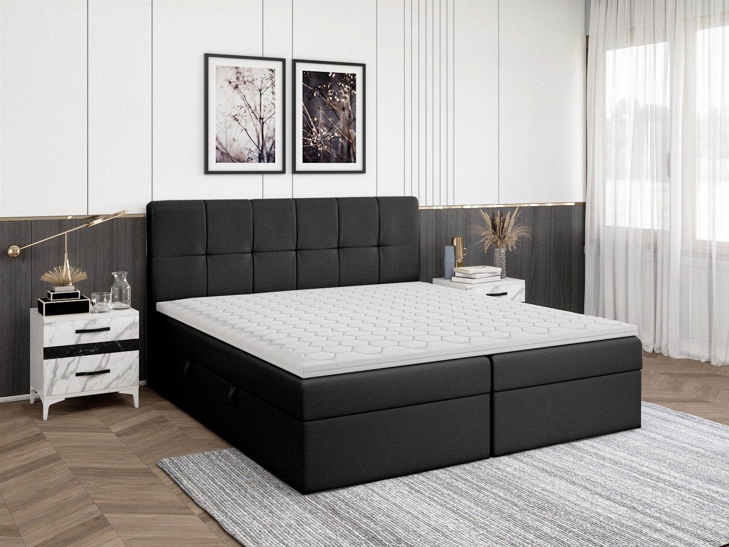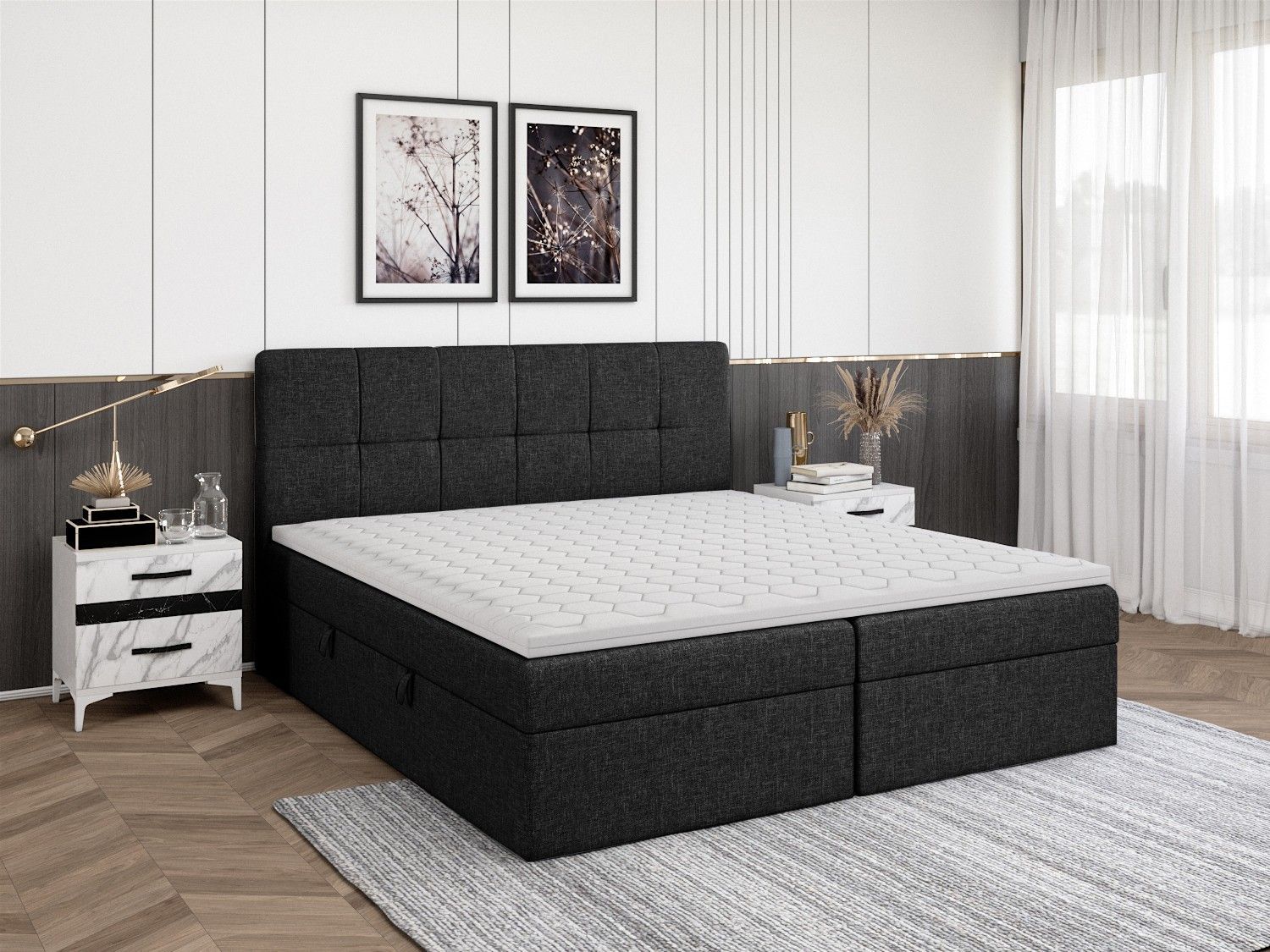 FEDVE Boxspringbett Mokpo Bettkästen Matratze Topper 140/160/180/200x200 cm