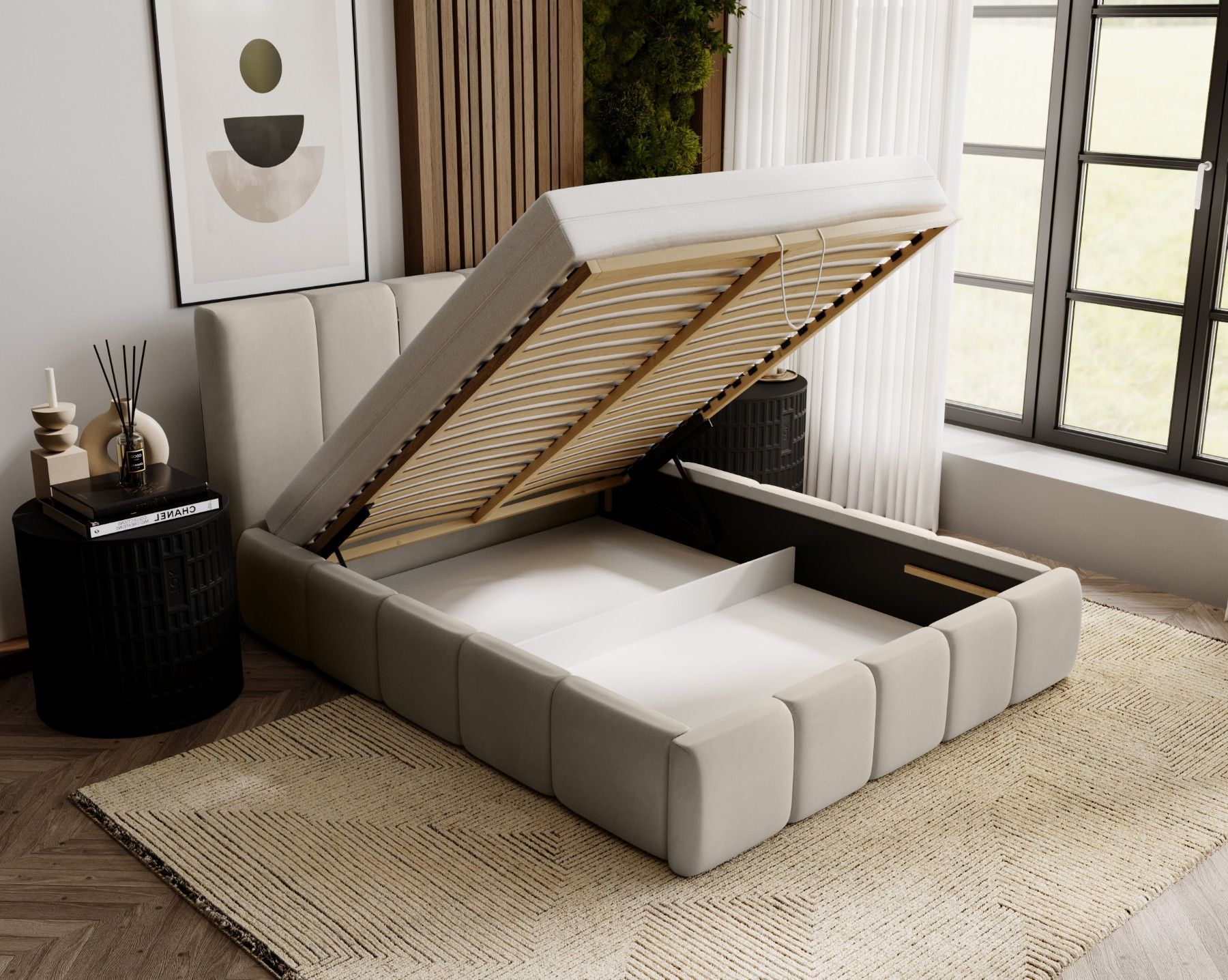 FEDVE Polsterbett Doppelbett Buchel Bett Bettkasten 120/140/160/180/200x200 cm