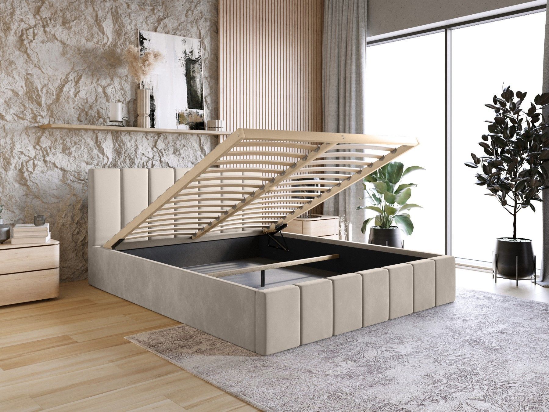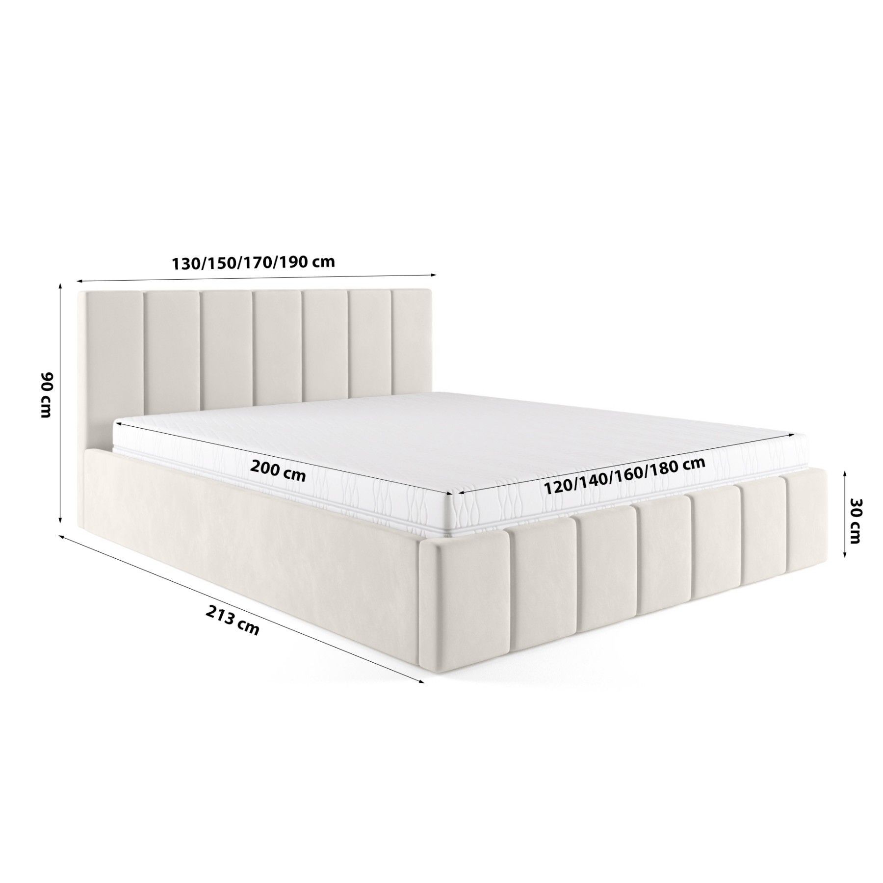 FEDVE Polsterbett Doppelbett PESARO Bett Bettkasten Matratze 120/140/160/180/200x200