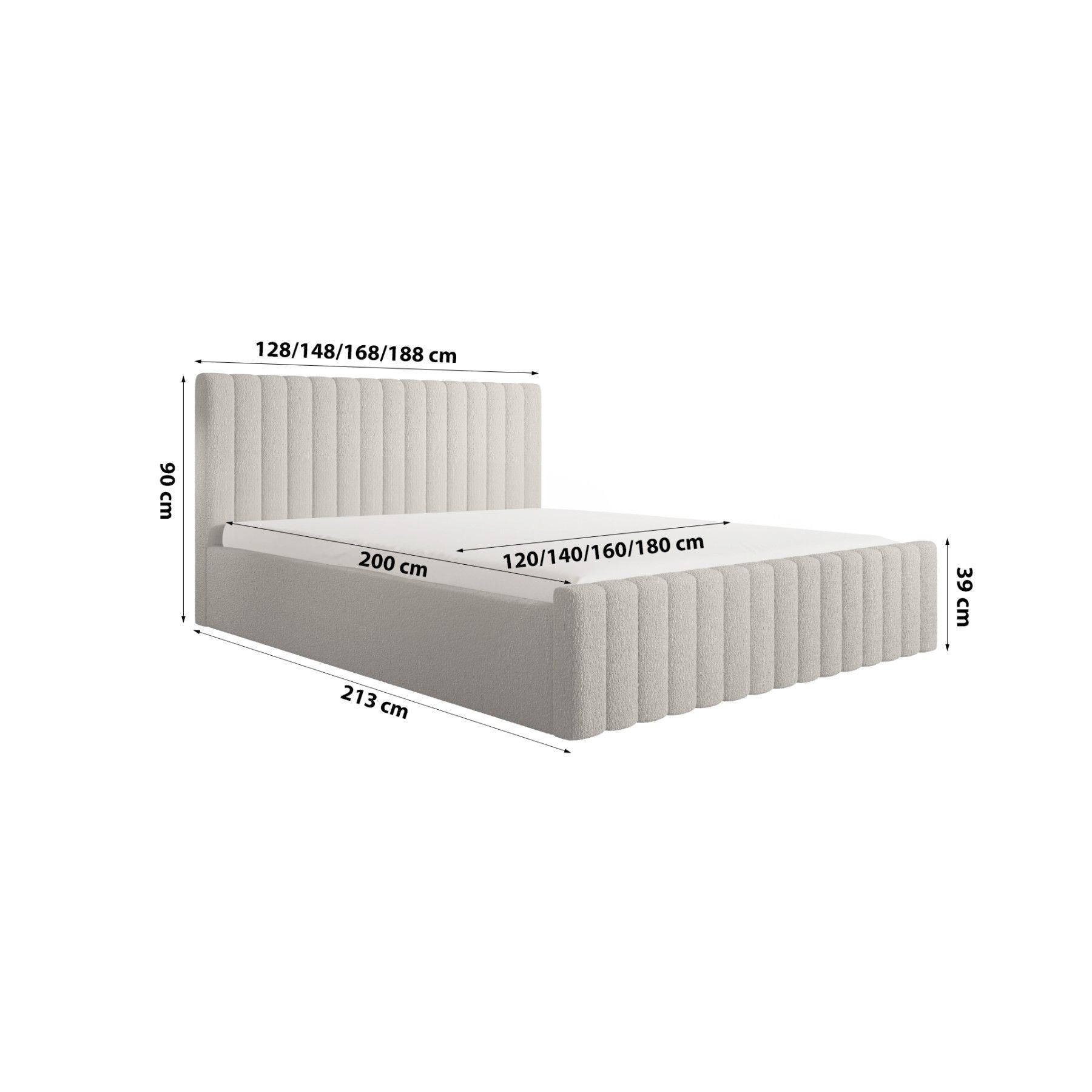 FEDVE Polsterbett Doppelbett Celano Slim Bett Bettkasten 120/140/160/180/200x200 cm