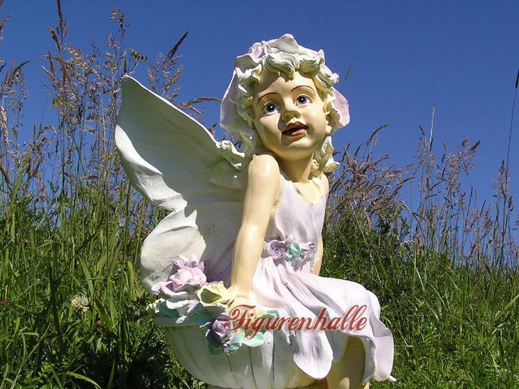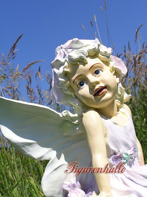 Fee Elfe Sitzend Blumen Mädchen Dekofigur Figur Garten Aufstellfigur Märchen Deko