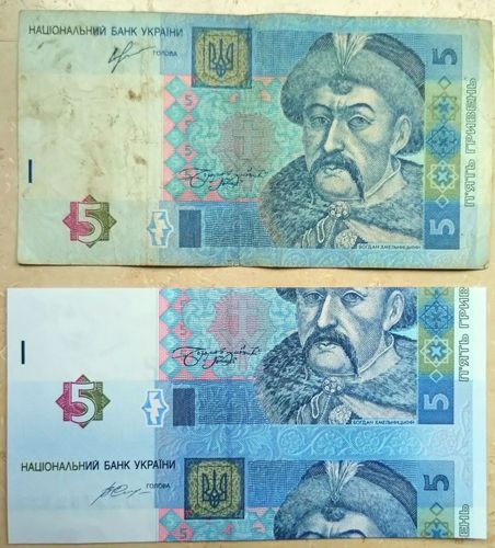 Fehldruck Druckfehler 5 Hrywnja Ukraine Geldschein Banknote