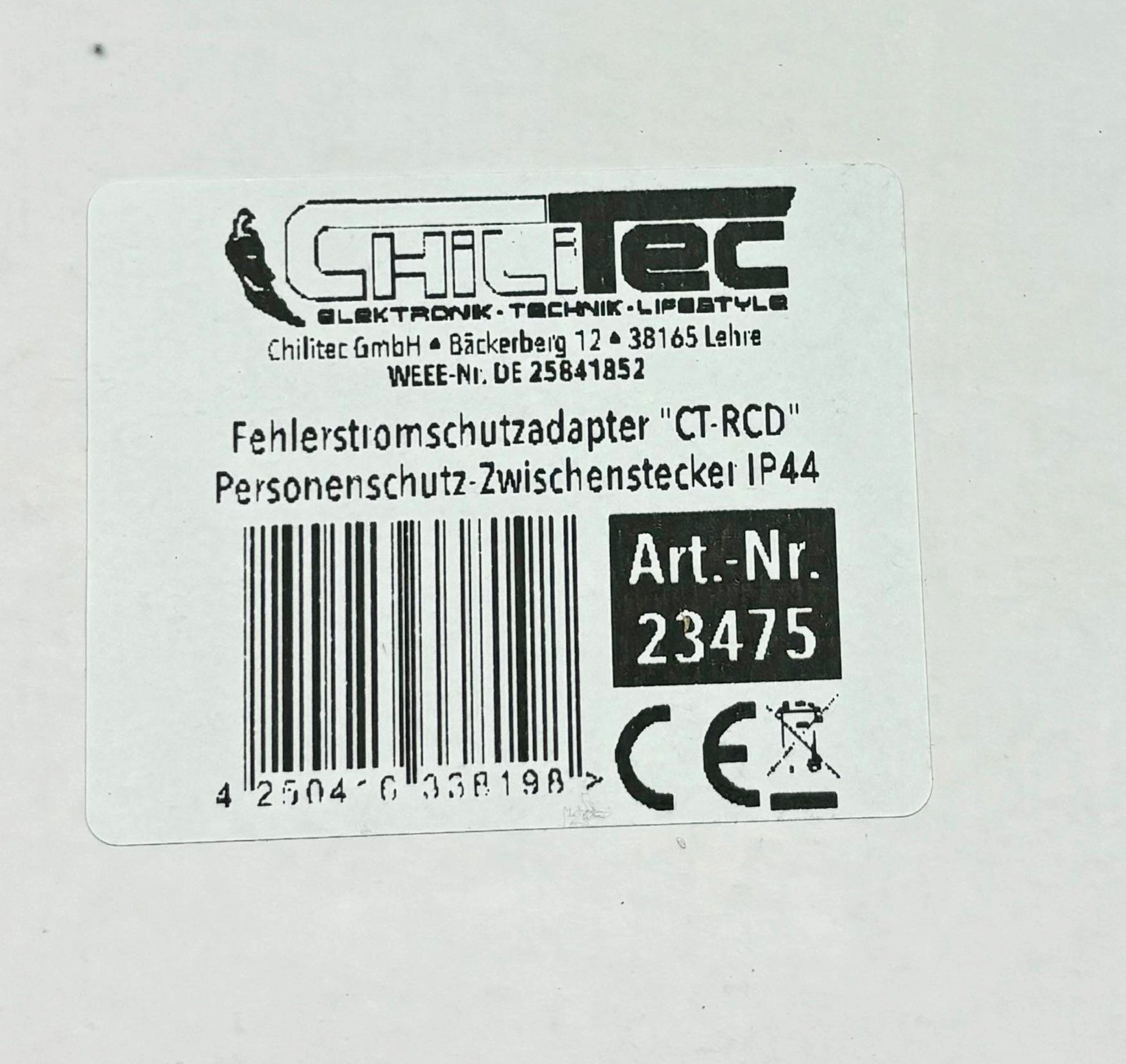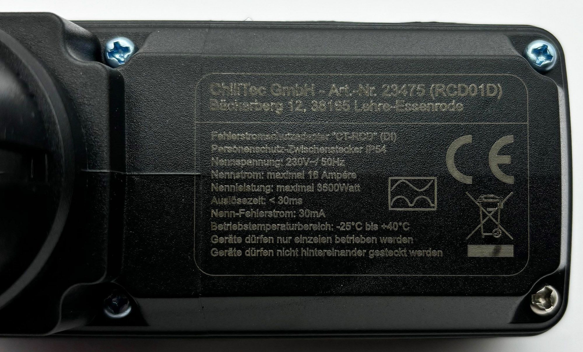 ChiliTec Fehlerstromschutzadapter "CT-RCD" (DI) Personenschutz-Zwischenstecker IP54