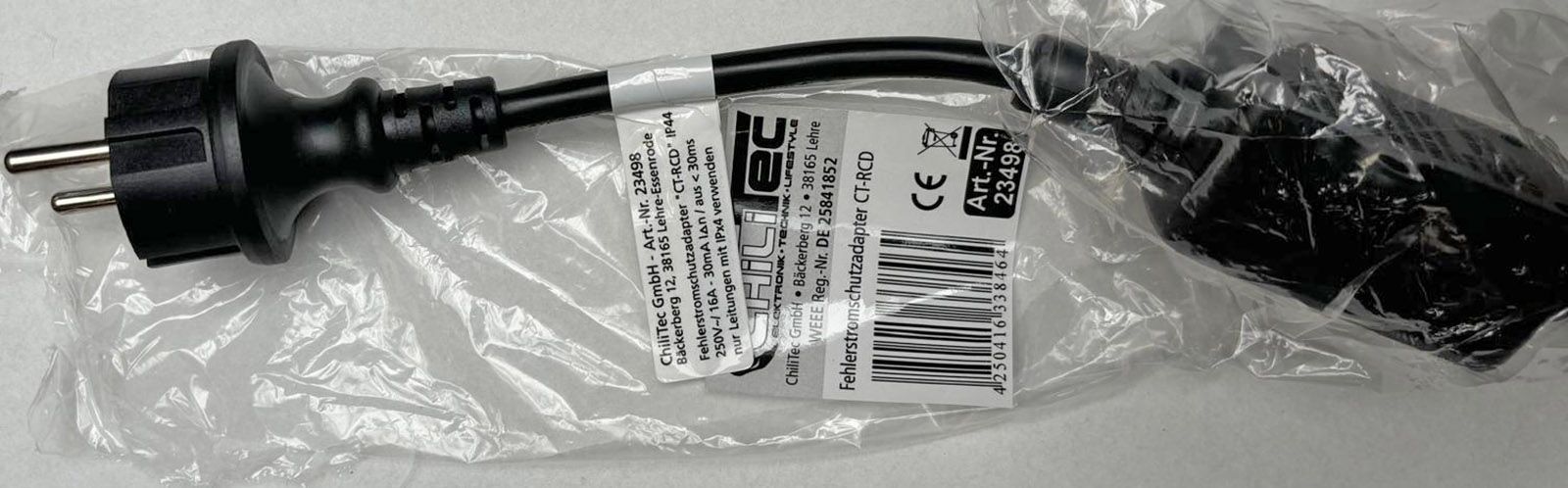 ChiliTec Fehlerstromschutzadapter "CT-RCD" IP44 Zwischenstecker mit Kupplung / Stecker
