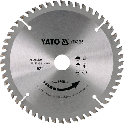 • Hartmetall Sägeblatt für Aluminium 160x20mm 52Z