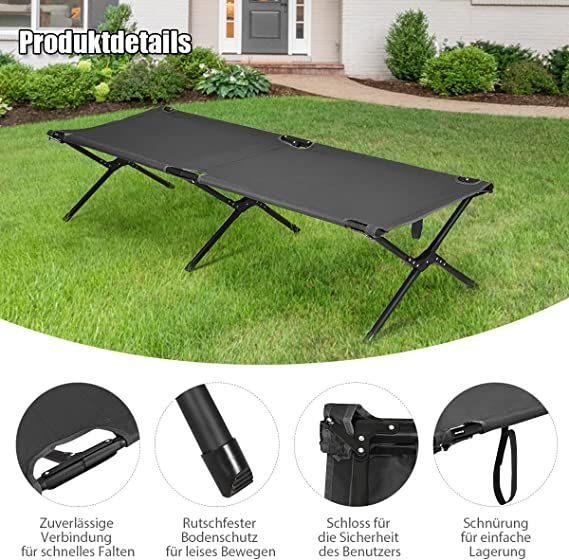Feldbett Campingbett Metallrahmen faltbar, Militär Klappbett Einzelbett Liege Bett