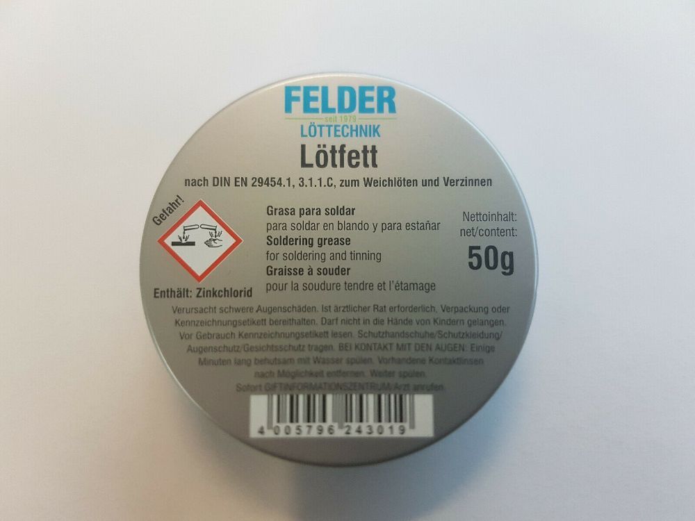 FELDER Lötfett 50g in Blechdose Lötbedarf Löten Weichlötfett Löt-Fett F-SW 21