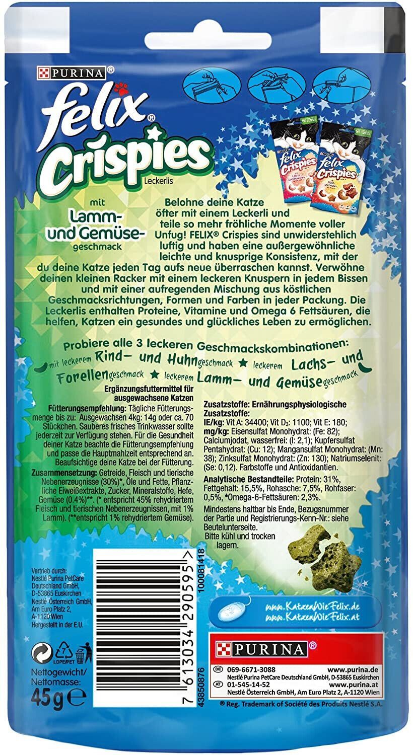 Felix Felix Crispies Lamm Gemése Katzensnack Katzenleckerlis 8 x 45 g 8er Pack