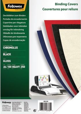 • Fellowes® 5378504 Deckblätter Chromolux - A4, Karton 250 g/qm, schwarz, 100 Stück