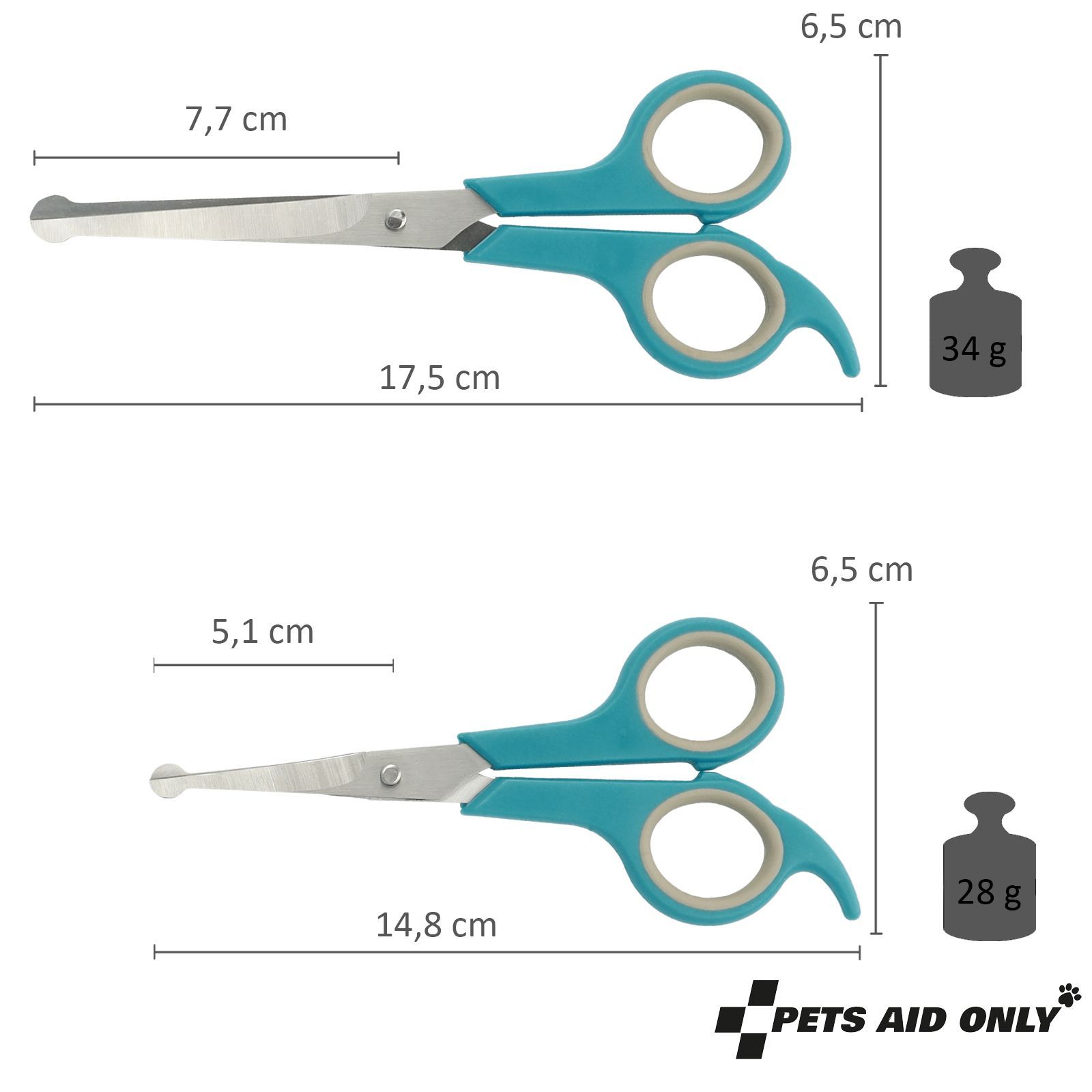 Fellschere abgerundet Augenschere Pfotenschere 17,5 + 14,8cm Haarschere Hund Katze