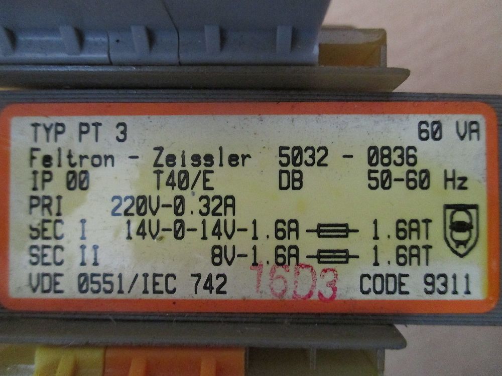 Feltron - Zeissler 5032 - 0836 Typ PT 3 60 VA pri. 220V sec. 2x14V und 8V T13/3