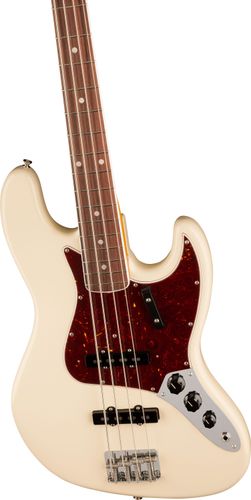 Fender American Vintage II 1966 Jazz Bass Olympic White Rosewood Korpus: Erle Hals: Ahorn Halsprofil: 1966 'U' Griffbrett: Palisander Griffbrettradius: 7,25' Mensur: 86,36 cm ( 34' ) Sattelbreite: 38,1 mm Sattel: Knochen 20 Bünde Tonabnehmer: 2 x Pure Vintage '66 Single-Coil Jazz Bass Regler: 2 x Vo