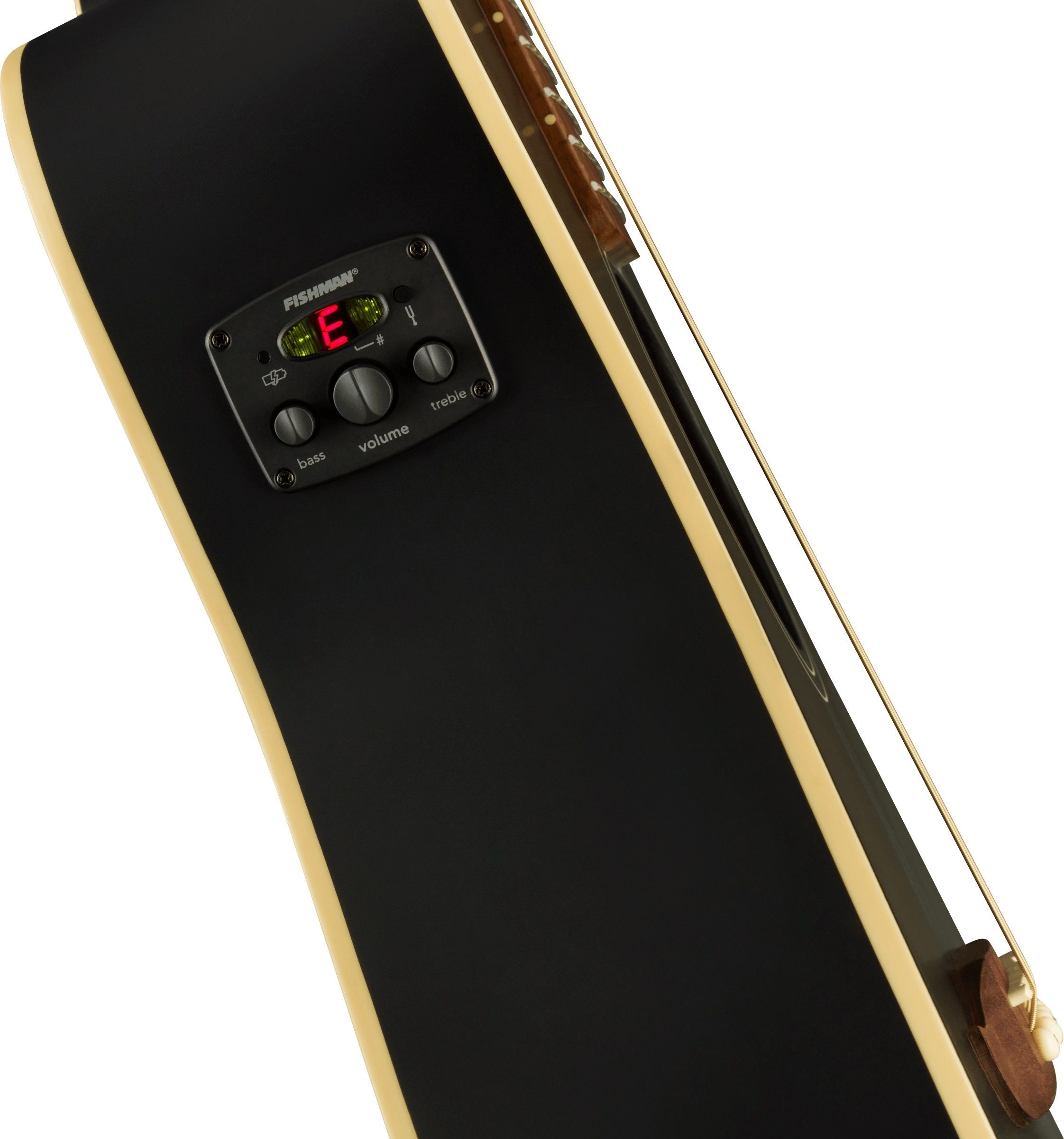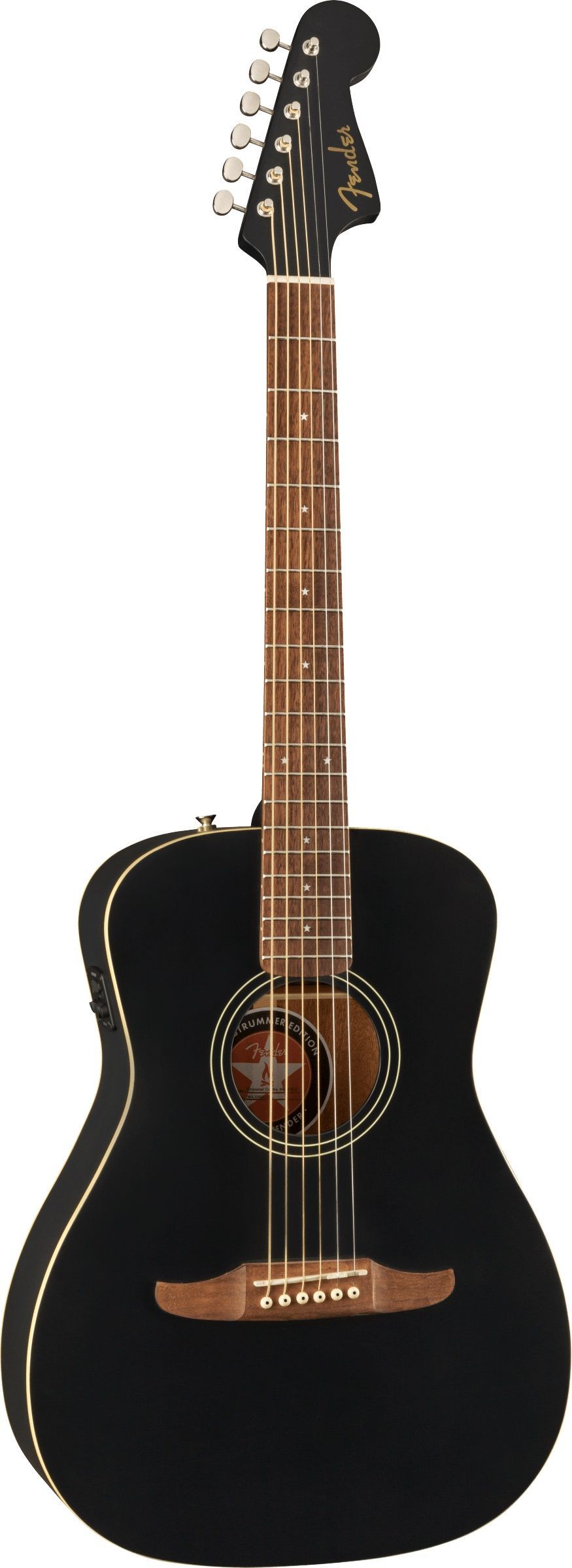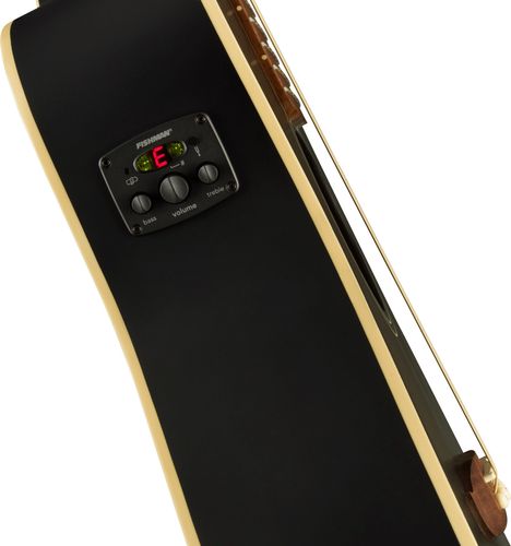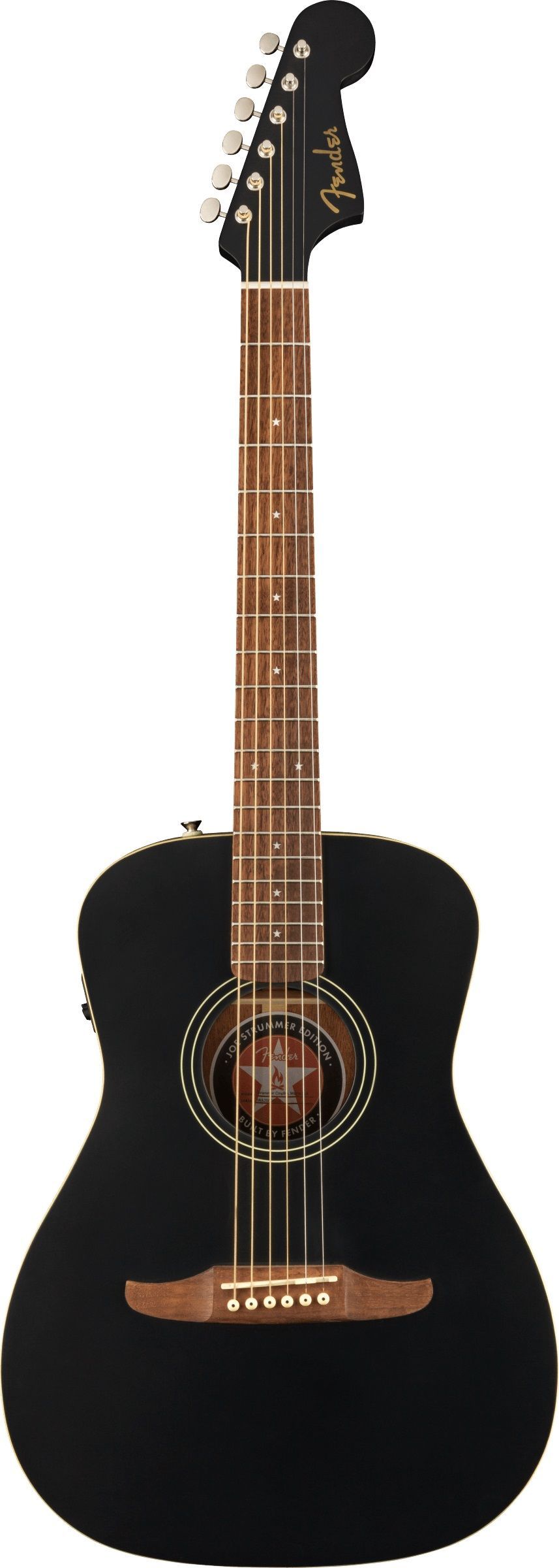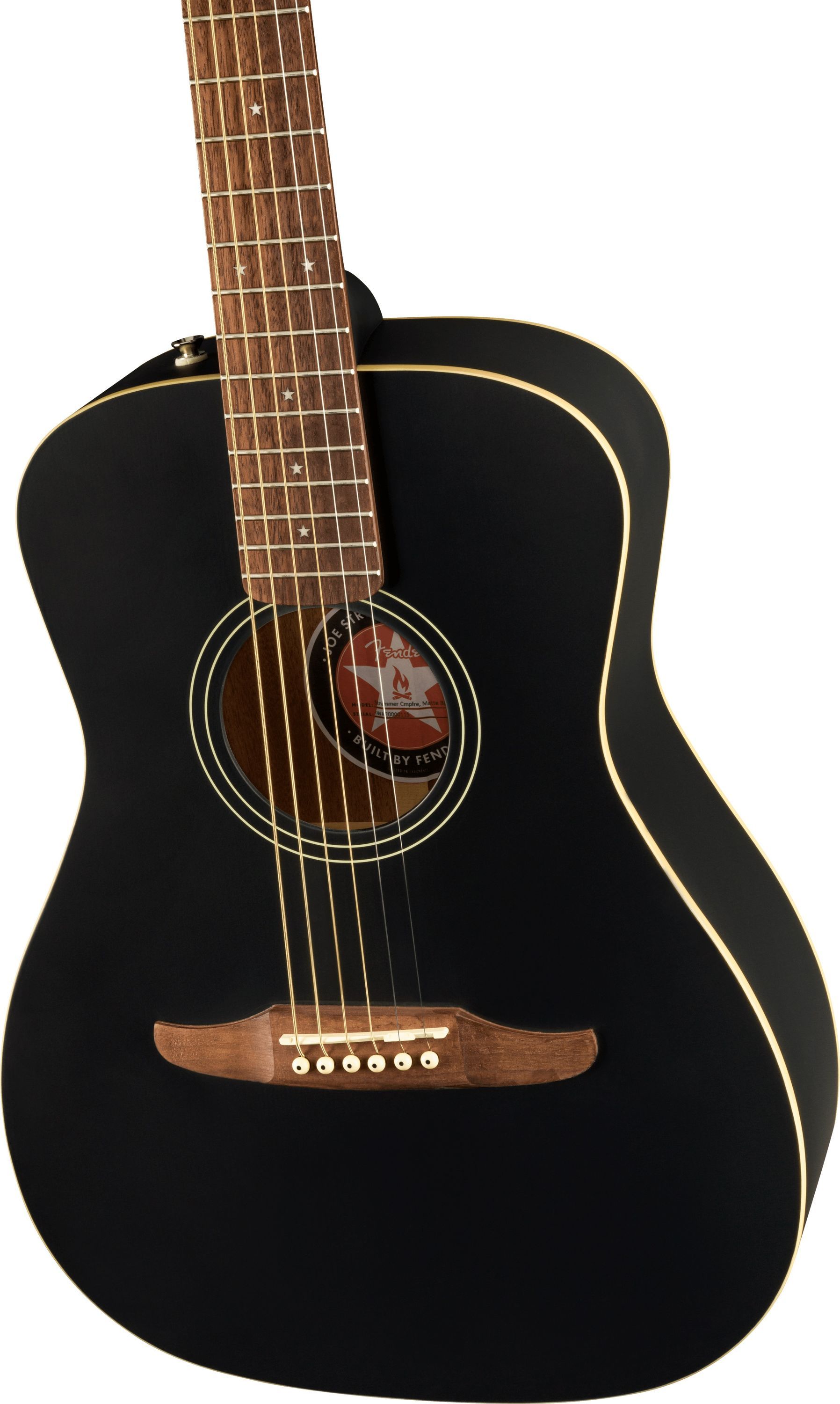 Fender Joe Strummer Campfire - Matte Black Decke: Massive Fichte Korpus: Mahagoni Hals: Mahagoni Halsprofil: Slim 'C' Griffbrett: Walnuss Griffbrettradius: 15,75'' Mensur: 61,2 cm (24,1') Sattelbreite: 43 mm Sattel: Graph Tech NuBone 22 Bünde Tonabnehmersystem: Fishman Regler: Volume, Bass, Treble M