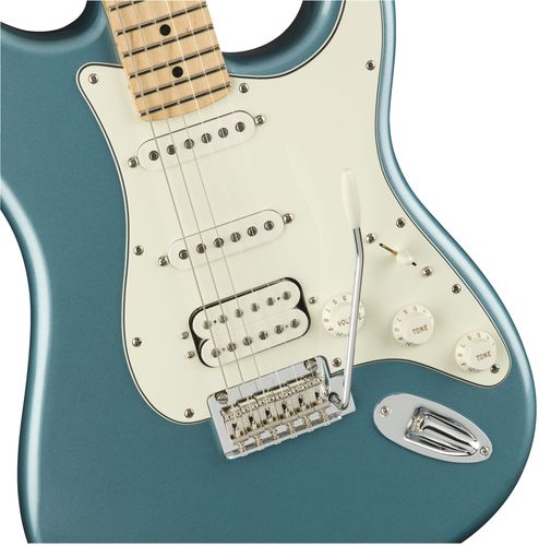 Fender Player Stratocaster HSS MN - Tide Pool Korpus: Erle Hals: Ahorn Halsprofil: Modern 'C' Griffbrett: Ahorn Griffbrettradius; 9,5' Mensur: 64,8 cm ( 25,5' ) Sattelbreite: 42 mm Sattel: synthetischer Knochen 22 Medium Jumbo Bünde Tonabnehmer Hals und Mitte: Player Series Alnico 5 Strat Single-Coi