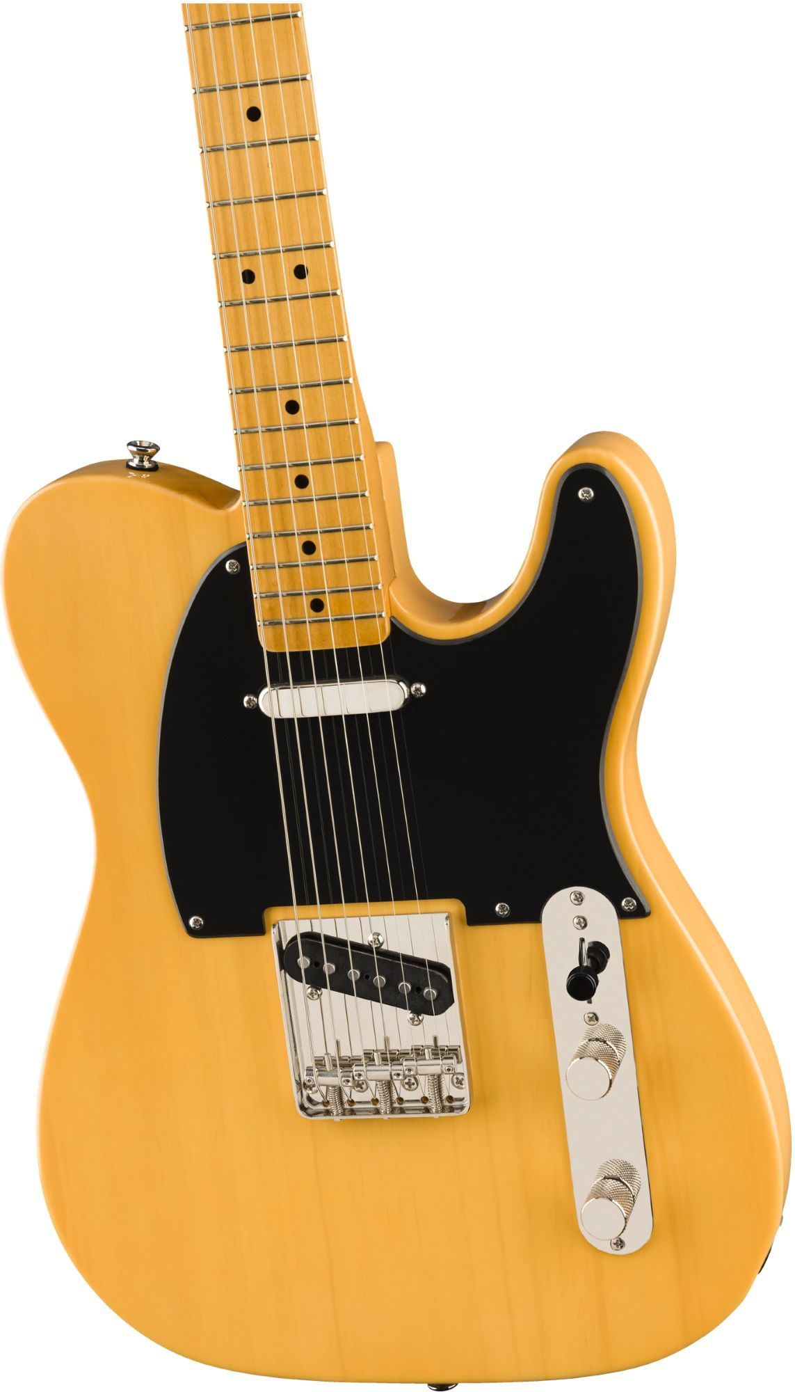 Squier Classic Vibe 50's Telecaster - Butterscotch Blonde Korpus: Kiefer Hals: Ahorn geschraubt Halsprofil: C Griffbrett: Ahorn Griffbrettradius: 9,45' Mensur: 64,8 cm (25,5') Sattelbreite: 42 mm Sattel: Knochen 21 Medium Jumbo Bünde Tonabnehmer: 2 Fender Designed Alnico Single Coils Tele Steg mit 3