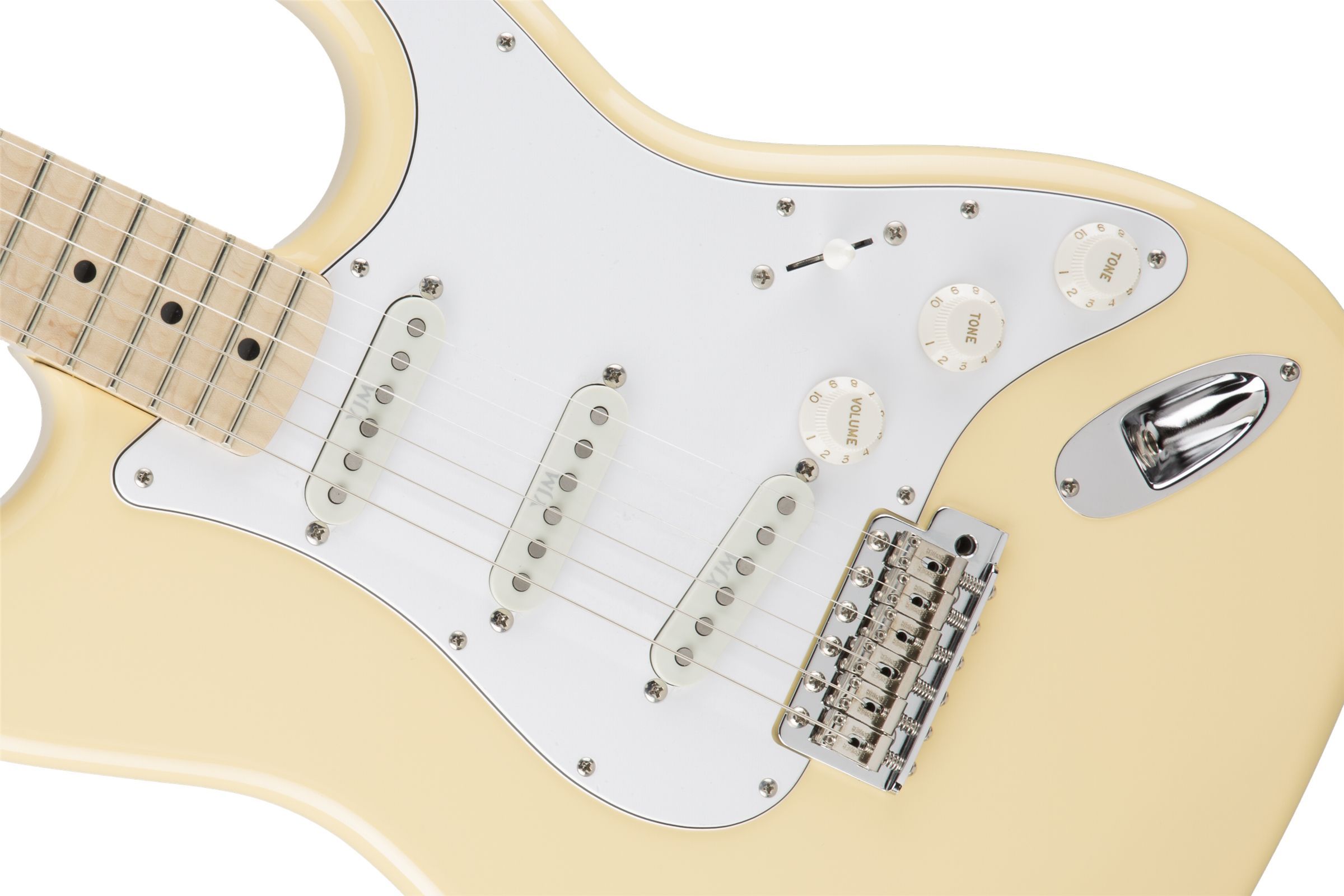 Fender Yngwie Malmsteen Stratocaster - Vintage White Signature Modell Korpus: Erle Hals: Ahorn Halsprofil: Slim ''C'' Griffbrett: Ahorn Griffbrettradius: 9,45'' Mensur: 64,8 cm Sattelbreite: 40 mm Sattel: Brass Inlays: Black Dot 21 Medium Jumbo Bünde Tonabnehmer: 1 x Seymour Duncan YJM Fury Strat ST