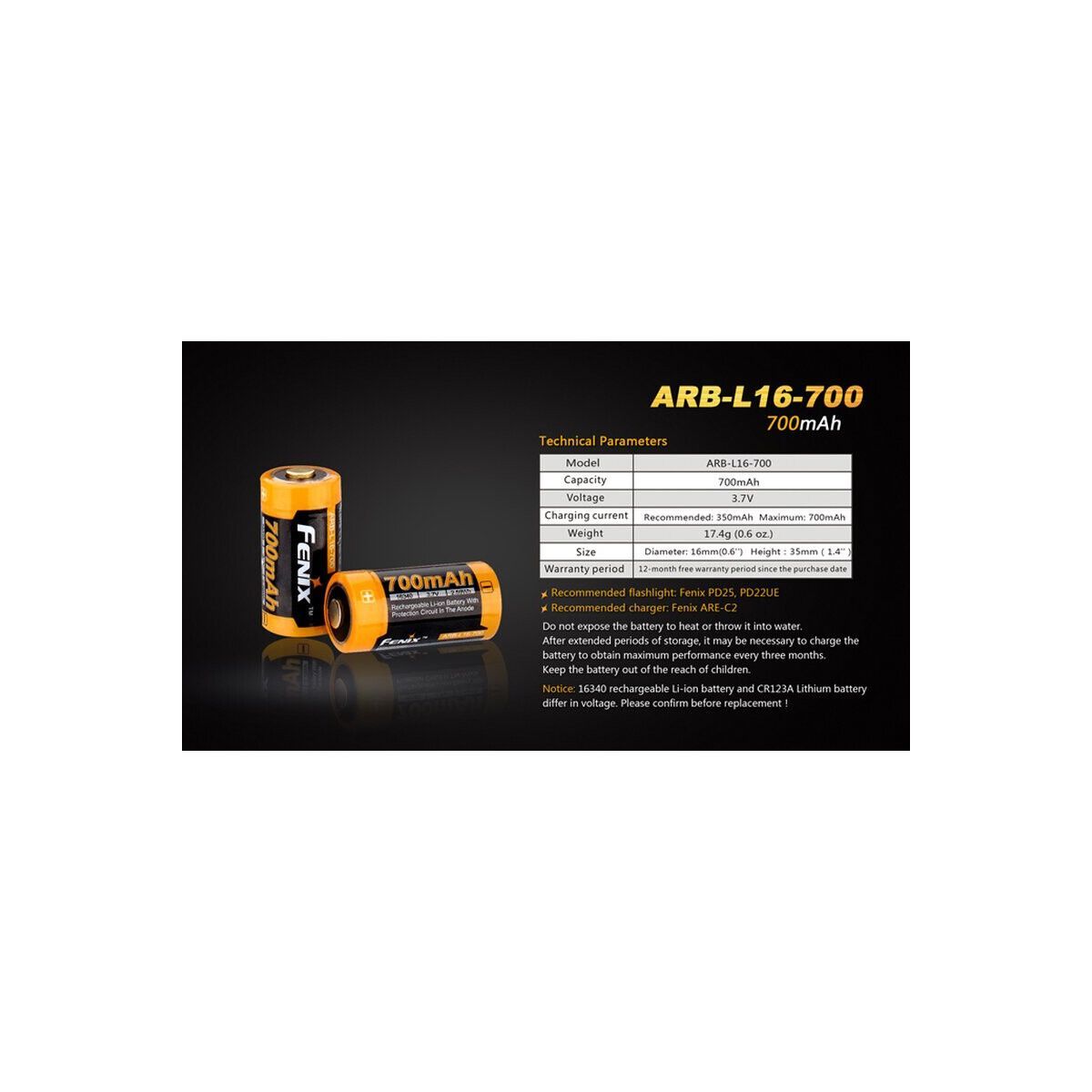 Fenix Fenix ARB-L16-700 geschützter Li-Ionen Akku 16340 RC123A
