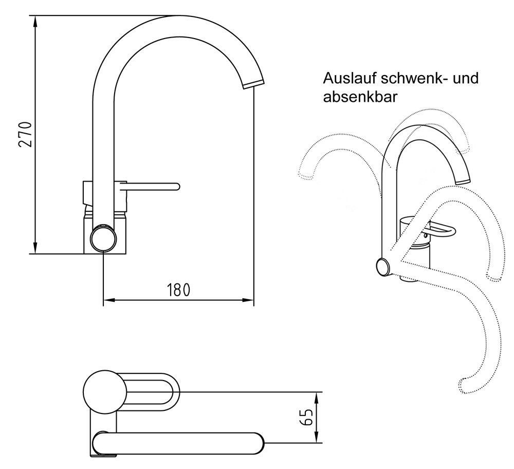 Fensterarmatur Universal Spültischarmatur Unterfenster klappbar Schwenkauslauf