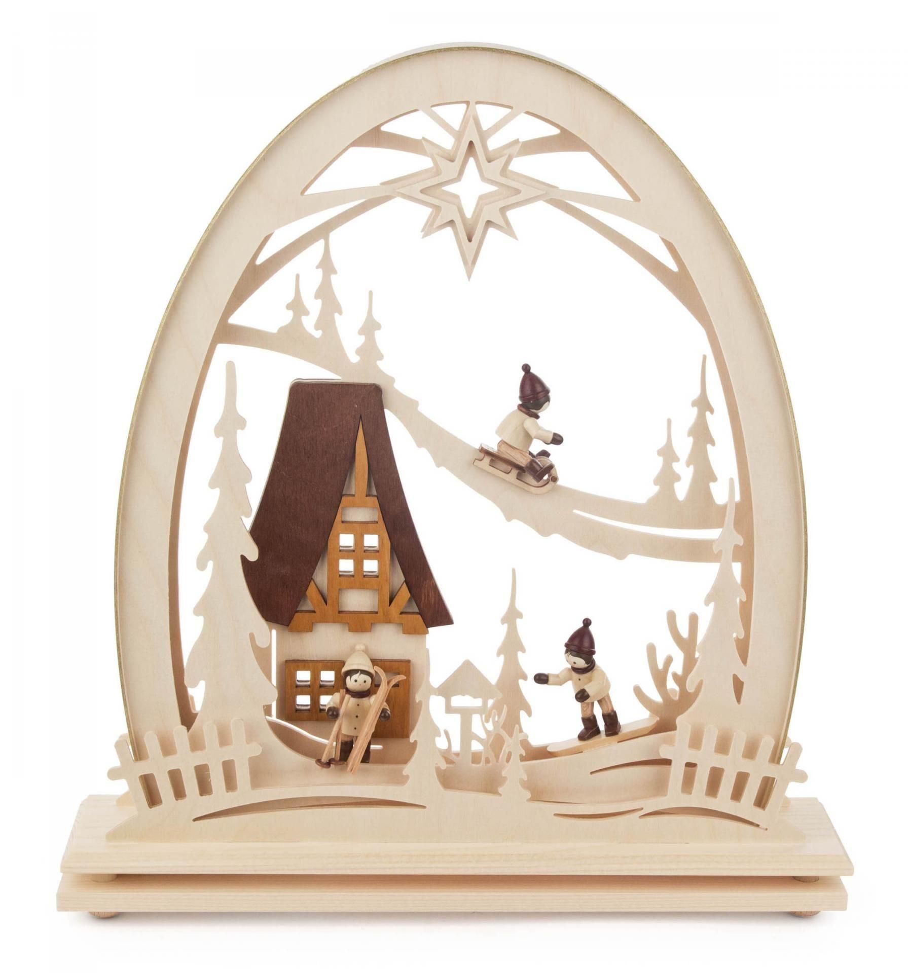 Fensterbild elektrisch Erzgebirgsbogen Seiffener Kirche BxHxT 31x33x6cm NEU