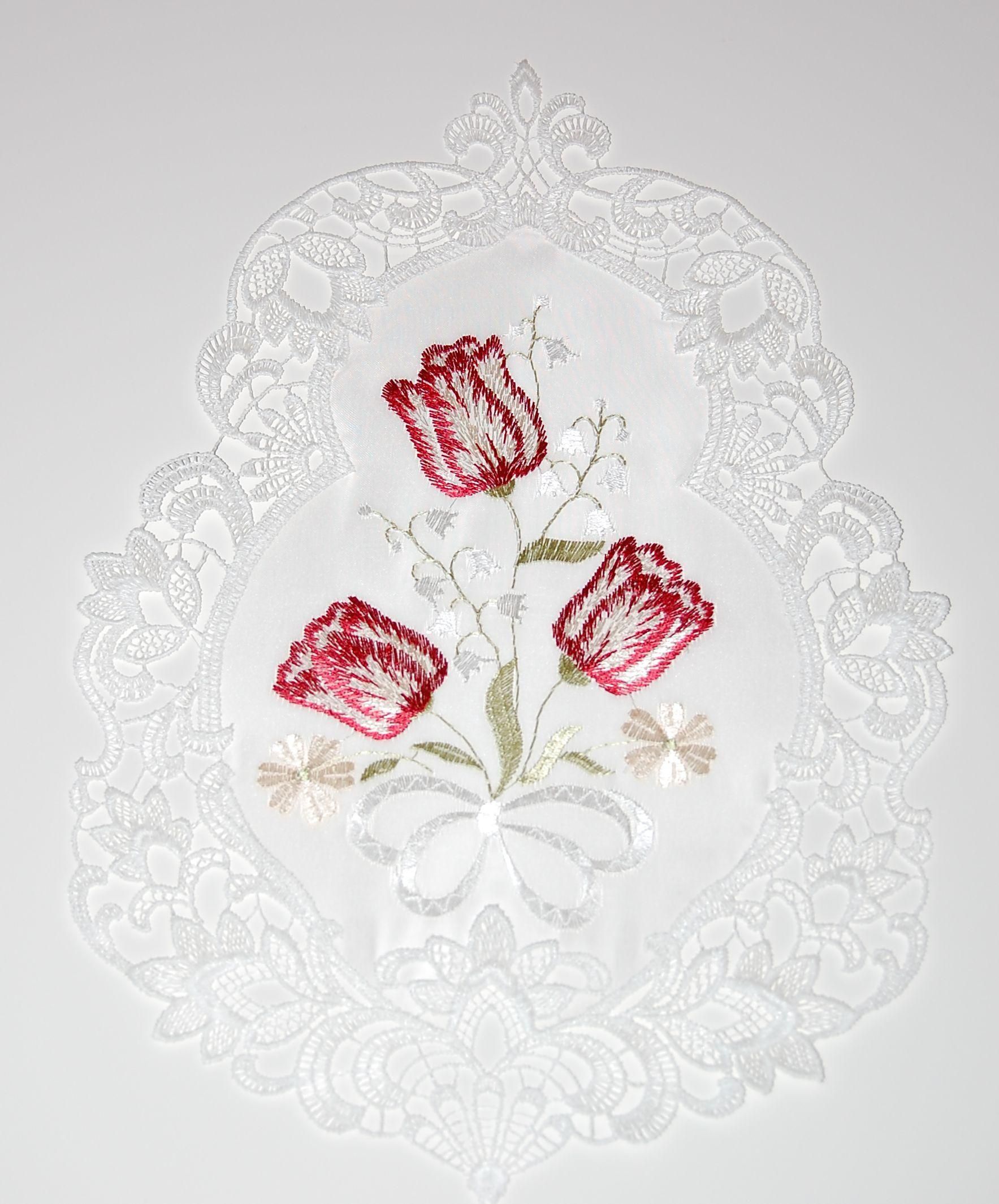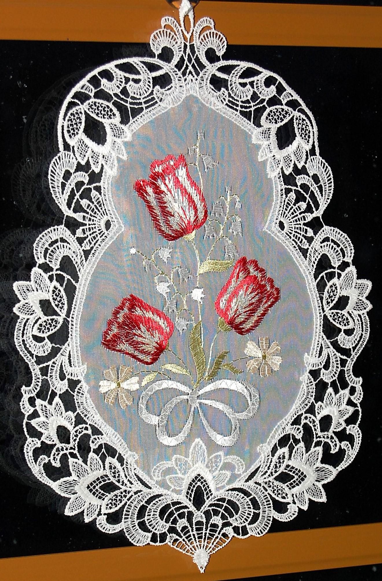 Fensterbild Frühling Plauener Spitze Weiß Fensterdekoration Ostern Tulpen 35 cm