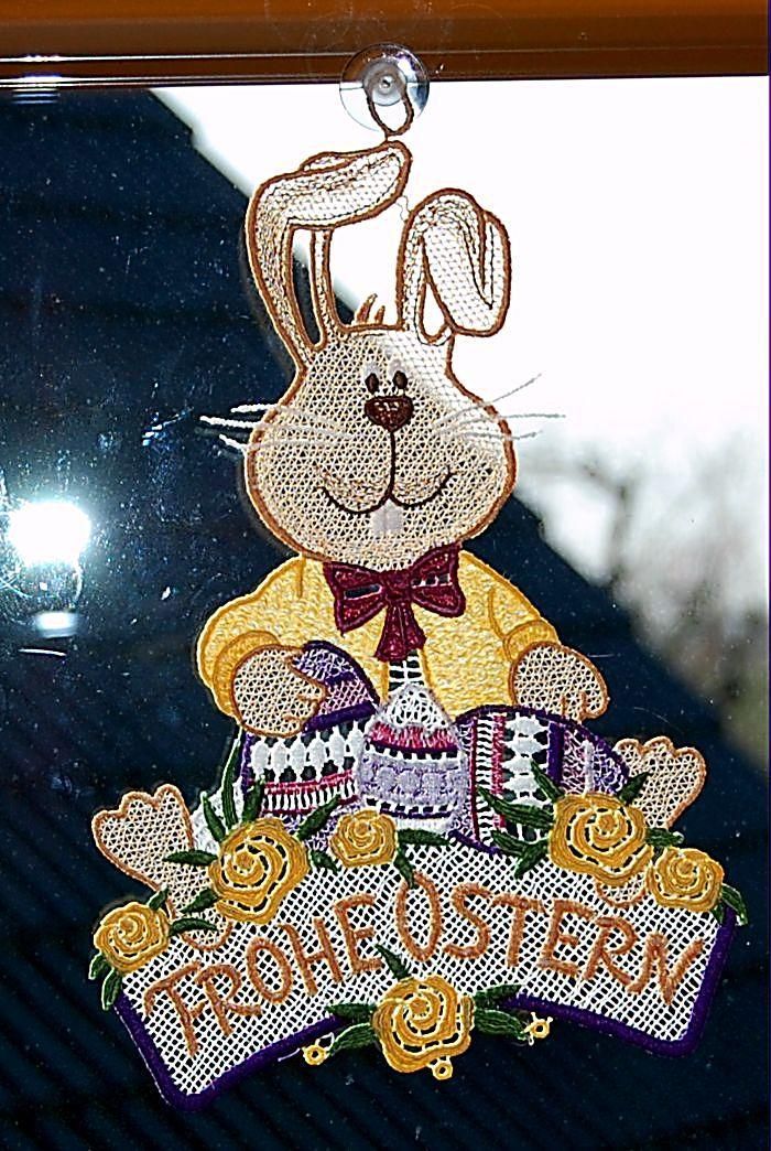 Fensterbild Ostern Plauener Spitze Osterdekoration Fenster Osterhase 26 cm